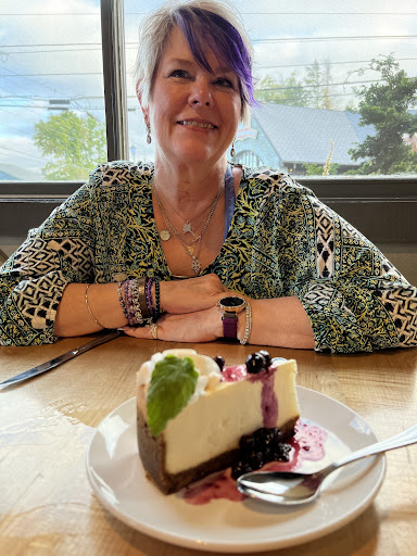 Although we don’t normally order dessert when dining out, when Keeli asked if we wanted to see the dessert menu, I mentioned to her that since it was our anniversary, absolutely! Keeli congratulated us on our anniversary, and she THANKED us for choosing The Speckled Trout for our special evening! Pleasantly full, but wanting to treat ourselves on our anniversary, my wife and I decided to split cheesecake with blueberry compote.
