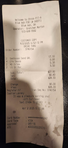Ā Ā Ā Read moreWho would have ever thought I would have to give a negative review for CHICK FIL A! We live within walking distance of this store but we will likely not return and will drive 15 min out of the way for Chick fil a when the kids want it! We went for the first time in a few months due to our last bad experience and had a similar one. Tonight one kid wanted icecream, the other wanted the toy in the kids meal. Get up to the window and check my order⦠because anytime you order from this store, you must check or itāll for sure be wrong. Anyways. No kids toy. I tell the kid at the window and he makes me hand me the bags back and says well it says āno toyā on here and I said well, thatās not what I said. He then proceeds to tell me he will have to charge me for the toy if thatās ok.. I say of course thatās not ok because I ordered it and it comes with the meal. Finally someone overheard this (assuming manager) and walks over begrudgingly and gives me the toy. I look at my receipt⦠there is no price difference in the two kids meals.. so what was he trying to charge me for? My last experience they also messed up and didnāt want to make it right either without having to āchargeā me. Oh and because the kid at the drive thru didnāt repeat my order back, it was my fault. He should have repeated the order back and I should have corrected him. This store gives major ick! Tired of being treated disrespectfully and like an annoyance when we go. Also, good luck making a complaintā¦. Canāt even speak to the store, it gets āforwardedā with no time frame of when you can expect to hear from anyone. Sad that this location gives the...