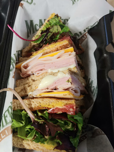 DO NOT GET FOOD FROM THIS PARTICULAR MCCALISTERS!!! We are a business and ordered food for a person's birthday and had it delivered. They did not bring the birthday individual's meal, as well as another employee's meal. They refused to deliver the meal back out to us, so we had to drive to the restaurant to pick it up. When we got there there was a long line and many people complaining of the same type of issue. The workers were screaming at each other and totally overwhelmed. After about a half hour they finally gave me the order that we called in advance to get and wrote the items on the side of the tied up bag and promised it was all there. Returned to work to finally get the birthday individual's order to them and they once again forgot half the order. Then I finally got to go back and eat my lunch from them that was now obviously cold. Opened up the box and there was only half a sandwich in there with two cut tomatoes sitting where the other half of the sandwich was supposed to be. Disgraceful and I would highly recommend to avoid this place...