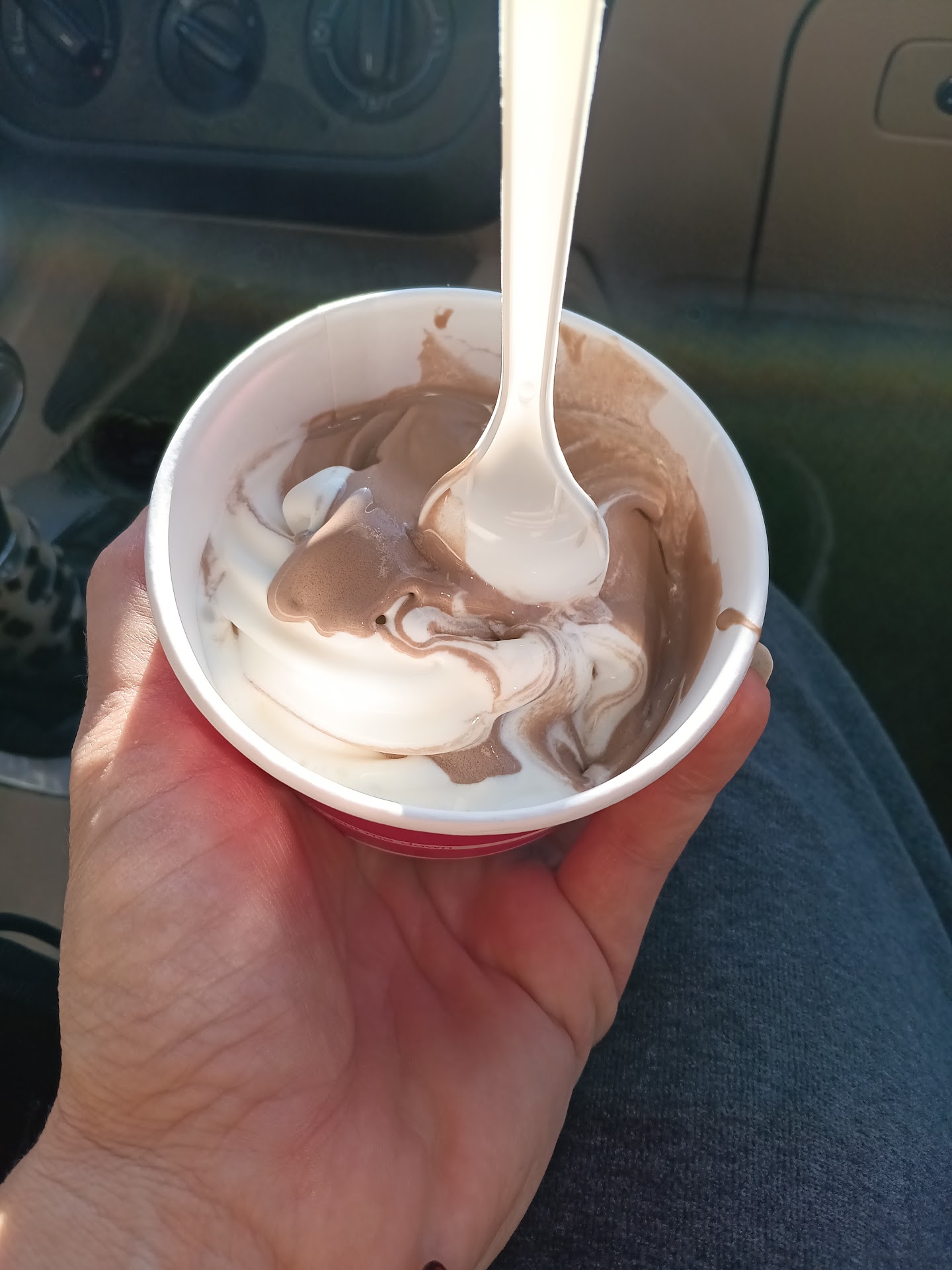 As others have stated, they are not guaranteed to be open during posted business hours. Last time we tried to stop, the sign on the door stated they often close early when they are slow and it's always a good idea to call first. We did that tonight (twice) and no one answered either time (there was also no message indicating we had even called the right place). We took our chances and they were open... but again, as others have stated, they were out of staples including cookie sandwiches and even chocolate ice cream! How can a soft serce ice cream shop with a very limited flavor menu to begin with be out of CHOCOLATE (and therefore subsequently twist) ice cream? Due to a miscommunucation, I received salted carmel soft serve (I wanted a flurry) - it was nothing special, even with the extra toppings I requested. Gave it 2 stars only because of the great location - otherwise, there are way too many other tasty ice cream places in greater Cincinnati to waste time...