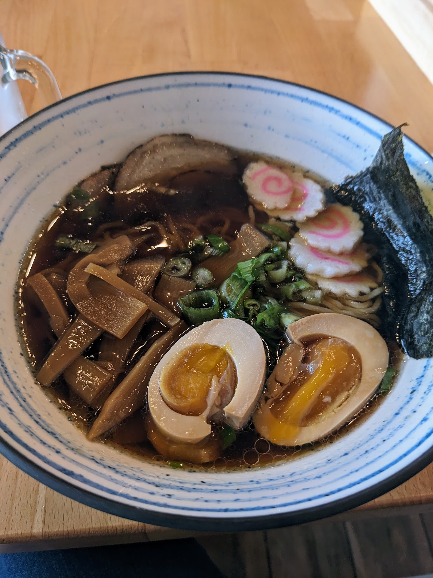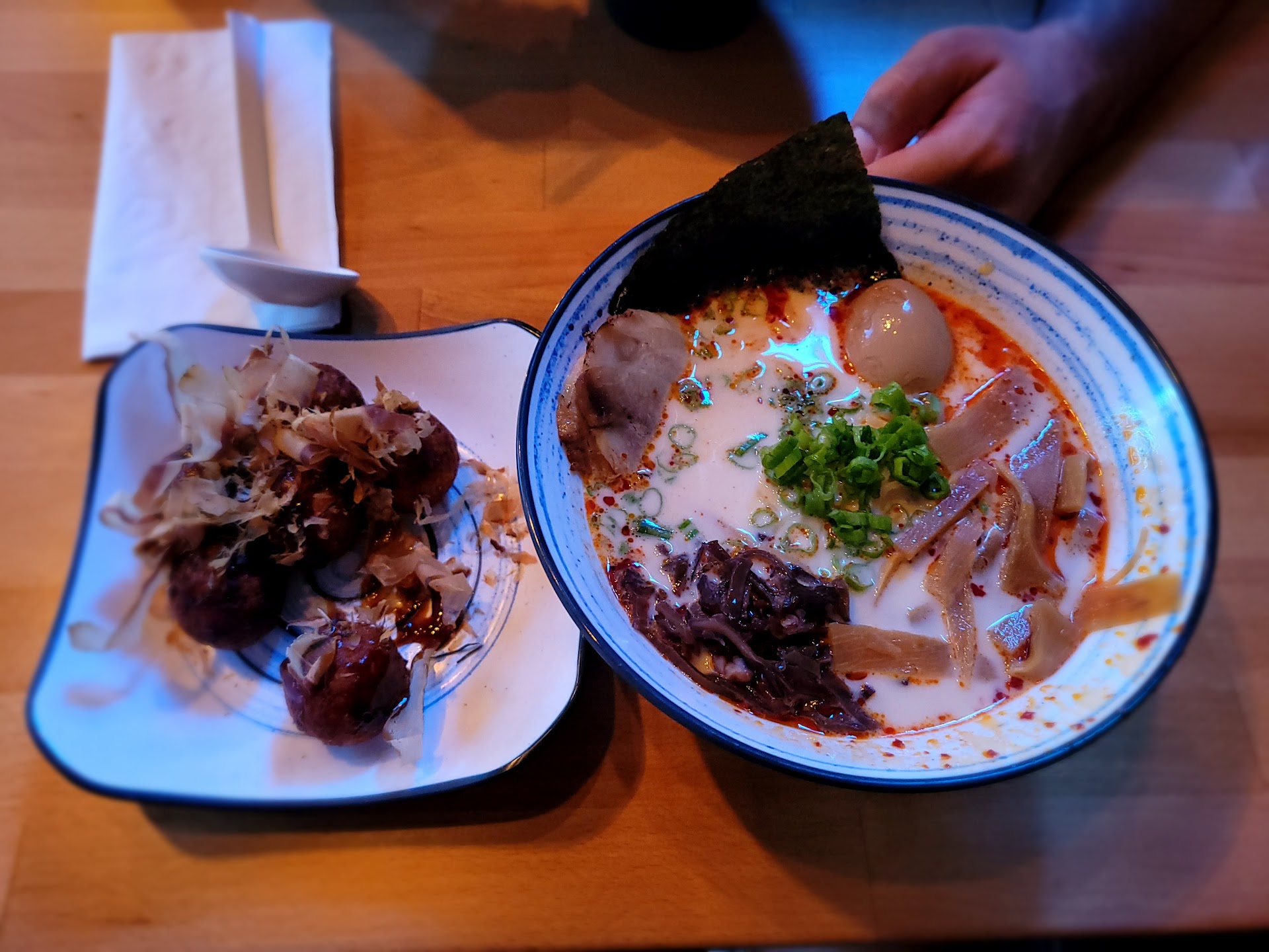 To start, the food here is fantastic. I would say I'm a pretty harsh critic when it comes to my ramen bowls, but this place really blew me away. The complex flavors of the broth matched with all the toppings blended beautifully. It wasn't too heavy or salty, just flavorful.