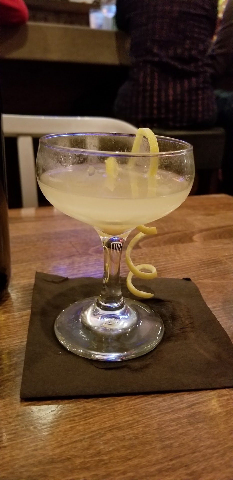 We got there a little before 4:30 pm, and the place mostly empty. We sat at a table near the bar to watch the college football games, the bartender did a great job waiting on us. To drink, we ordered the Fidel Castro and Kitten Fizz, and for an appetizer we ordered the Roasted Marrow Bones. The drinks came right out of course and they were delicious; the Roasted Marrow Bones came out a little while later (with toast and cranberry and onion jam), and it was literally a decent-sized bone (from a cow or calf?) that had been cut in half length-wise and put in the oven. All the rich, fatty marrow had melted and was perfect for spreading on the toast, I'd never had that before, but I would definitely have it again.