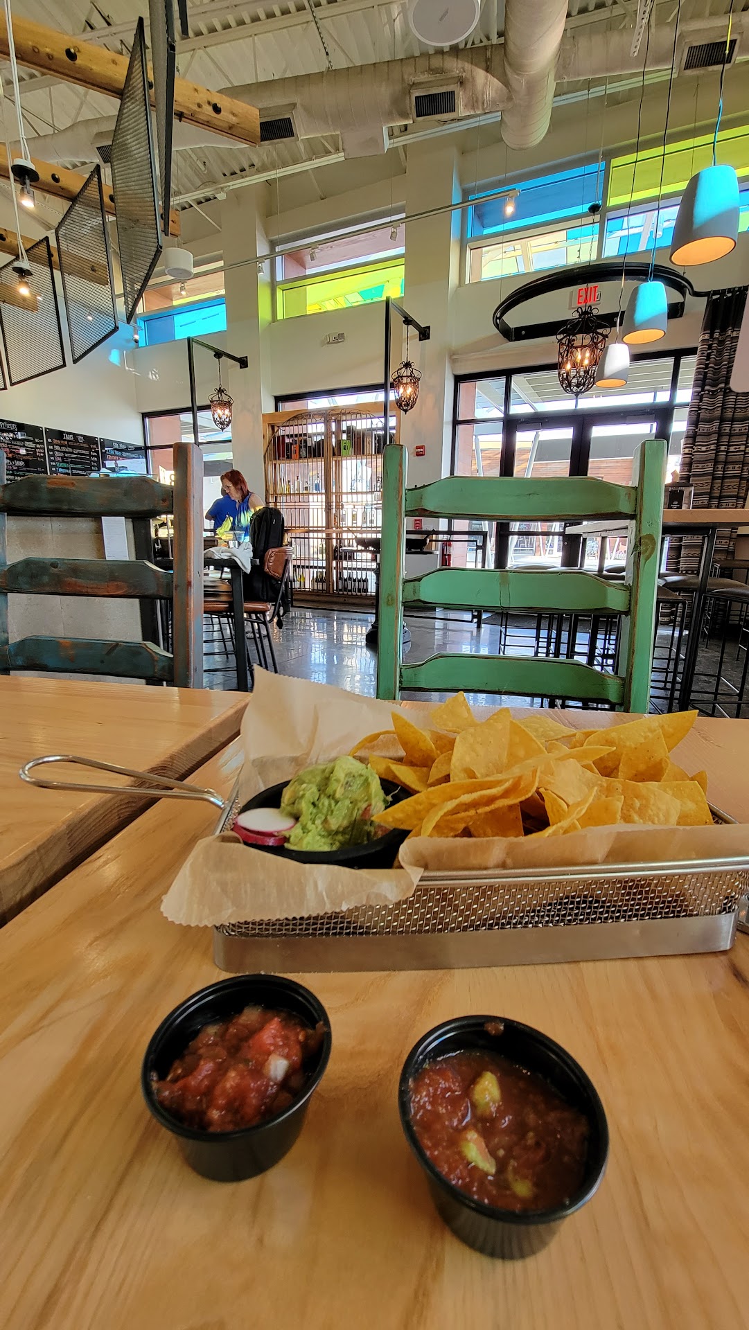 Read moreFirst and foremost, while I get the lunch counter setup and don't really have an issue with it, I don't like to tip before service. Tips are how a lot of servers live but its intent is merit based. If I left a fat tip and got poor service than what's the point? Second is that some of the food felt very inauthentic and uninspired in some things, and fantastically creative in others. I want my Mexican food seasoned and tacos were hit and miss on this front. Chicken taco was bland, but carnitas taco was seasoned very well. Mostly hit but the misses were glaring. I don't know if this is a "safe" choice made because of the suburban feel of this part of town (gaudy mcmansions within a stones throw), but season your stuff y'all! Margaritas, while good, are really over priced. A single beverage should not cost 13 bucks or more, but food prices were very reasonable. The self serve salsa is a bit gross, how many people sneezed or coughed on that stuff, no thanks, can you just bring it to me or have some sort of dispenser that isn't just a bowl set out on an end table? Staff was friendly, decor was on point, the vibe is there; this place is scratching at the door of being excellent and just can't get past the line, so unfortunately it falls into mediocrity. The most appealing spot in the weird little ticky-tacky living center/park/retail strip/restaurant collection thing they are in, but it's not saying much. I'm not opposed to traveling outside the city proper for a good meal, but this isn't worth the 25 minute car...