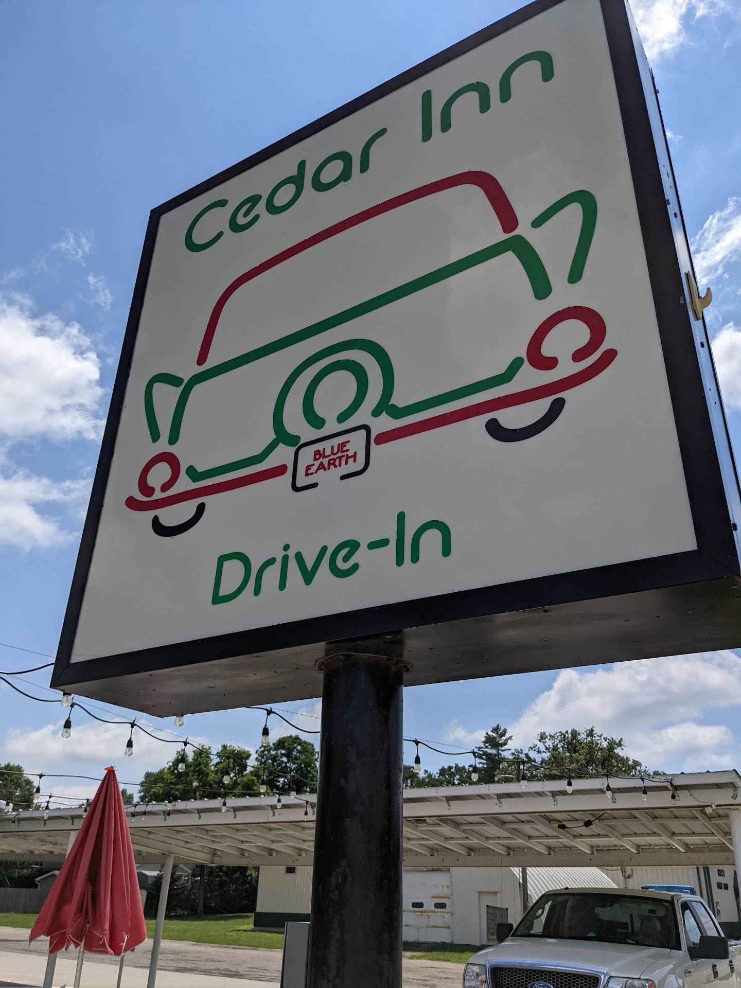 Read moreNice old fashioned drive in stand. We walked up and ate in their outside dining area (rhere is no indoor dining room). For shade, some tables had umbrellas and some were under a canopy. Good burgers with toasted buns. The fries that were included also contained onion rings! Both the fries and rings were yummy! For dessert, my wife had the dole pineapple whip in a dish (sherbet like). I had the caramel cone that was vanilla with caramel on both the in and the outside! It was a real enjoyable experience. We decided to check this restaurant out when we stopped at Blue Earth to visit the 60 foot Green Giant statue (we were returning to Wisconsin from Glacier...