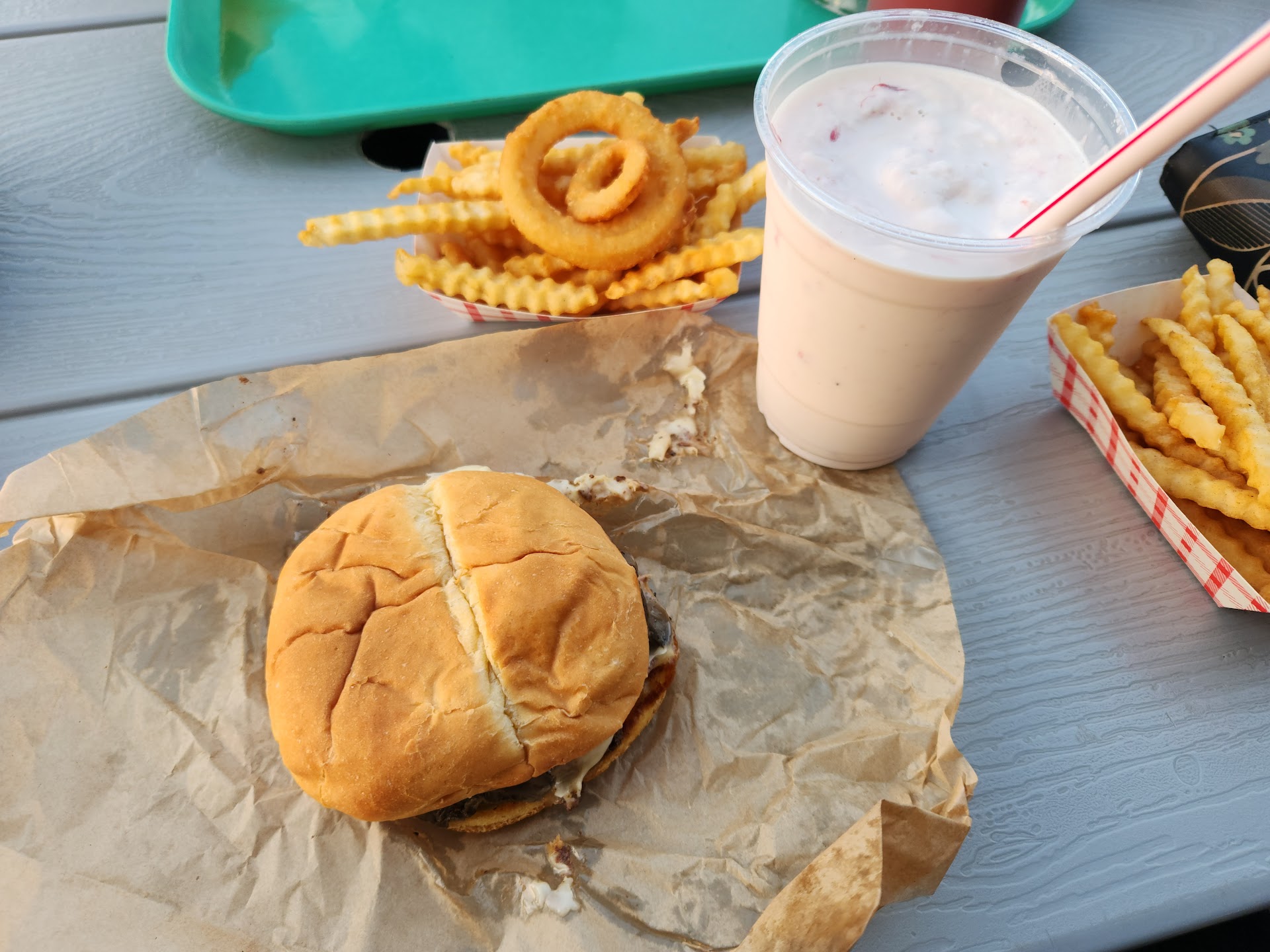 The disappointment came with the food - my son ordered a cherry slushy which he normally loves, but wouldn't drink. I tasted it and had to agree, it had a weird musty taste that was very off-putting. I ordered the PB&J burger and it was very blah - this is the type of item you expect to have some pizzazz good bad or otherwise. Fries were also meh - very thin and overcooked.