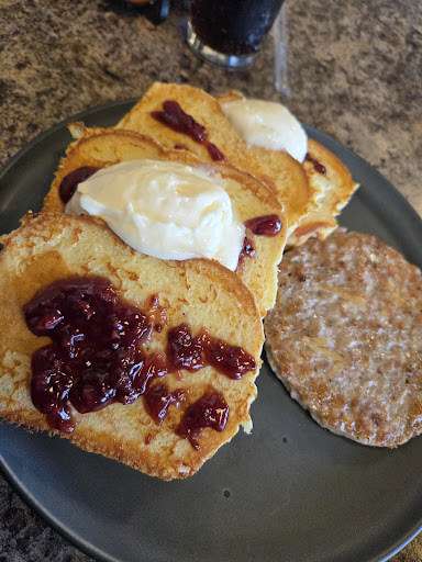 I grabbed the French toast with a jam they are offering as a special. The heavy cream and jam were sweet and savory. They had it out and hot for my appetite in good time.