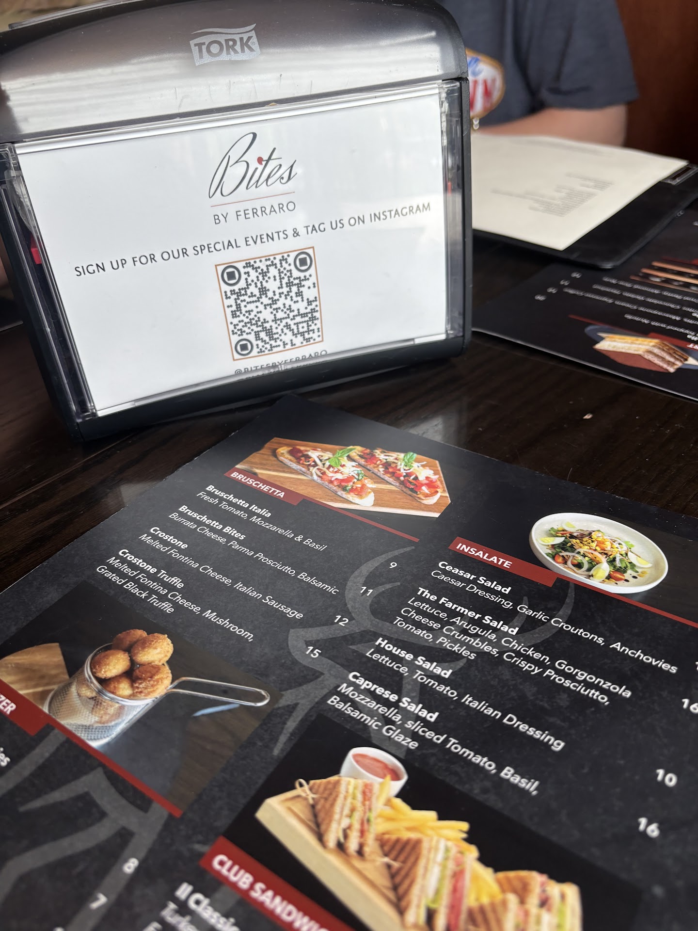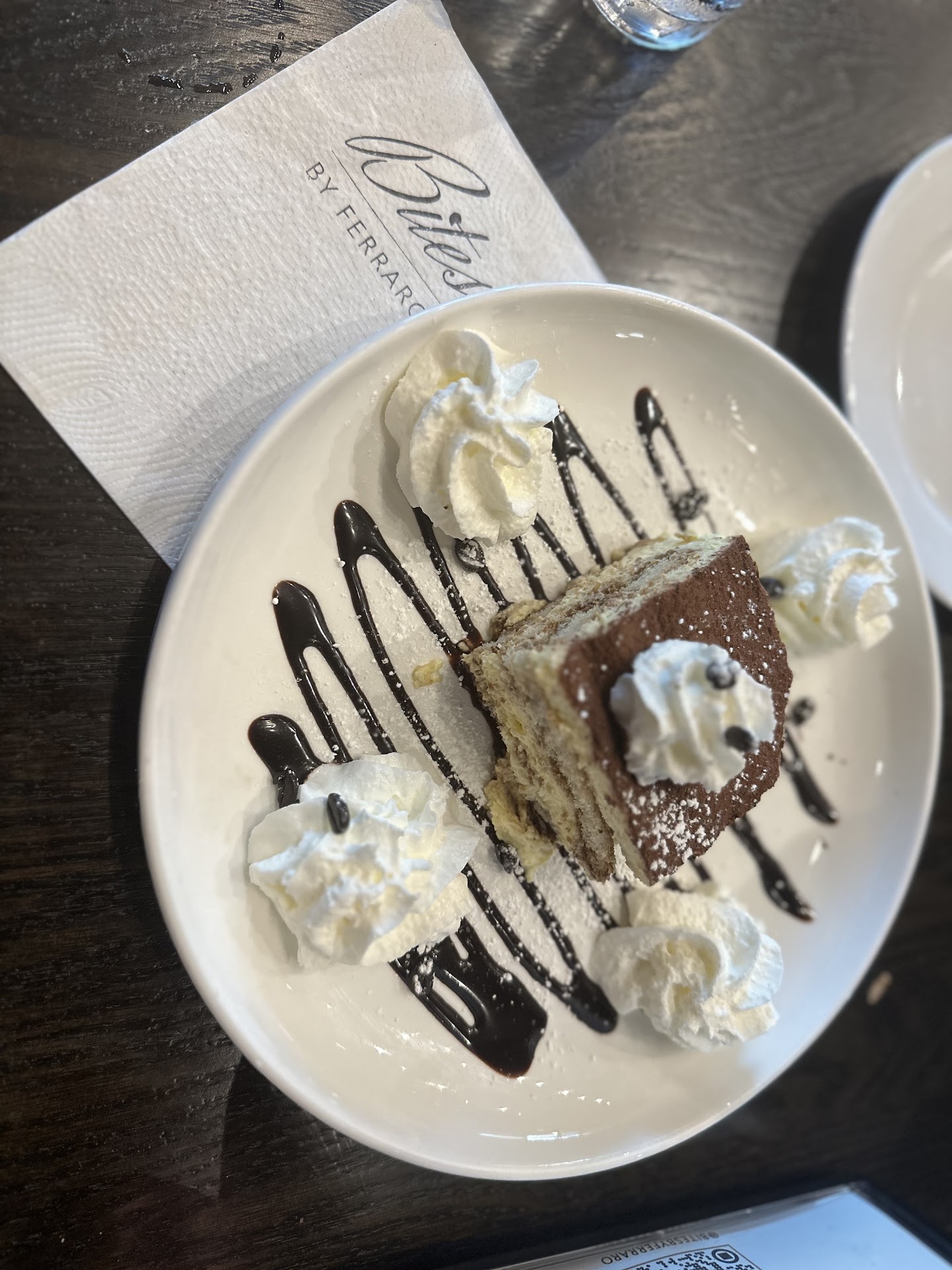 Read moreDanielle F was our server (I believe) and she was great BUT she was training a young lady , which I feel horrible because I forgot her name, who we found out that it was her first day or second day and my husband and I had to take the time to inform management and the owner how amazing she was. Not only was she sweet, pleasant and attentive but she knew the menu better than some that we have had at Ferraros, and that is saying a lot. This young lady went through the entire menu and informed us about the favorite dishes and described them perfectly. Please know we sincerely do not know who she is. All we know is she drives one hour to work to Bites and worked at a BBQ place. I truly hope someone will read this review as she deserves this recognition and mostly the owner and manager need to know. She was great and made our experience so nice that we will be back very soon to try either the Tiramisu or the Lemon dessert that we were too full to try.