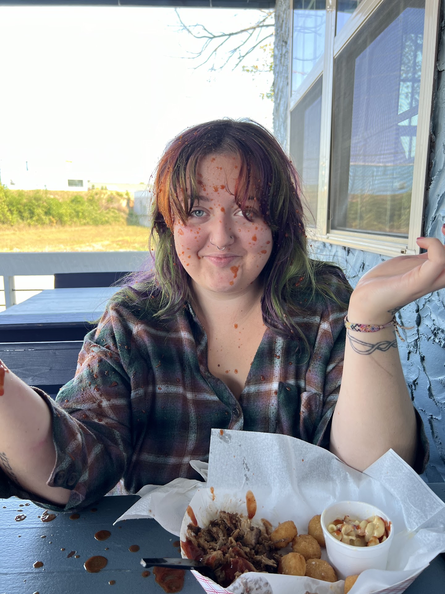 Read moreDisappointing. We ordered the BBQ Plate with chicken, potato salad and coleslaw, Brisket, brunswick stew, and collard greens. On the plus side, the place was very clean, the staff were friendly and understood what we were asking about when we asked about gluten allergy concerns and nothing we had tasted bad. However, the “BBQ Chicken” was a portion far smaller than I would put on a small sandwich and was sliced as if I had ordered it for school lunches from a deli counter in a grocery store. The level of smoke was marginal at best. Again, it tasted and looked like sandwich meat from the deli. The potato salad was quite plain and again in a portion cup the size I would put on a child’s meal. The coleslaw was a bit over sweet and the texture was off putting because of an inconsistent chop/shred that left almost one third of the tiny portion in hunks of cabbage too large for a single bite. The brisket was decent in flavor but could have used more salt and a good bit more smoke. The stew had good flavor but was barely warm. The collards were the only thing we wouldn’t have changed in any way except portion size. The house sauces on the table tasted almost identical. The “sweet” was only slightly sweeter than the other two sauces. The “regular” was exactly that. Not a lot of depth or distinguishing flavor from the other two sauces. And the “hot” wasn’t. I mean not at ALL. I am VERY sensitive to spice and I didn’t consider any different than the “regular” except in consistency and a slight color difference. As a place to get a meal when on the road and NEEDING a gluten allergy safe selection, it’ll work. But just be aware you won’t be leaving stuffed or even comfortably full, and it won’t be a place you’ll specifically seek out for unique or memorable...