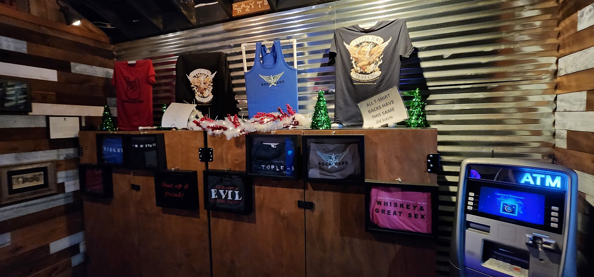 The hostess was on her phone as we entered, and continued to do so the entire time, ignoring everyone and everything that was happening around her. Especially when I went up to ask if they could turn the music down, which was blaring obnoxiously loud, despite only two other tables of people trying to have conversations, which apparently they complained as well. We were told that the music stays on one setting and that's it, no adjustments, ever. So while the guests i had were screaming at each other, I just watched chunks of dust fall from the ceiling onto tables and people. Oh they also sell merch for some reason. Maybe in case you want to publicly show someone were not to go. As a veteran myself, it makes me question if a veteran really runs this place? No discipline, no structure, no respect, no cleaning, nothing good on the menu. The best thing this place could do is shut down and allow a real restaurant to move in. What an embarrassment for the city of Blue Ridge.