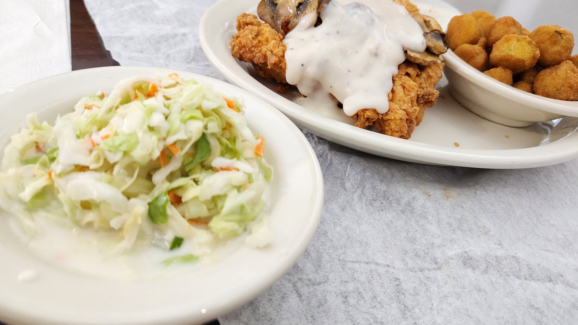 Ā Ā Ā Read moreFor the good - the biscuits were perfectly flaky and delicious and the apple butter was absolutely incredible. We bought a couple of jars before leaving. We normally don't eat apple butter, but theirs is delicious. It's baked & served warm. The wait staff was also very sweet. For the decent: the hamburger steak my husband got was okay & my sister-in-law's country fried steak was ok. (She said it tasted just like the steak on a Jack's steak biscuit.) The okra was fine - tasted like regular frozen okra that'sbeen deep fried. Kinda hard to mess that up. They both thought the fried green tomatoes were pretty decent. They're too thick in my opinion, but the breading was pretty good. Now, unfortunately, for the bad...I got the meatloaf and although I received two huge pieces, it was inedible. It just had a weird smell and taste. My sister-in-law thought it may due to green peppers, but I make mine with green peppers at home. The hashbrown casserole was really awful, too. I have had dried out hashbrown casserole & I've had it where it's not been cooked enough. This wasn't anything like that. I'm not sure what's in it, but it was bad. Not sure how potatoes & cheese can be messed up so badly, but somehow, it happened. The manager came to check on me when she heard I didn't like the meatloaf. Hard not to tell when both my husband & I took just one small bite each. She offered me anything else, but I just had an order of cream corn added to my order. I honestly wouldn't have bothered the manager because I hate being that person. I appreciated that both the waiter & manager were concerned & wanted to make everything right. We're from the south - Alabama - and we were really looking forward to some great southern meat & two/three. We all come from long lines of fantastic southern cooks so I feel we're more than capable of judging southern food. To us, this place was no good. Maybe the burgers & sandwiches are great, but what we had was bad. If we are ever in the area again, we may go in to buy apple butter and a pan of...