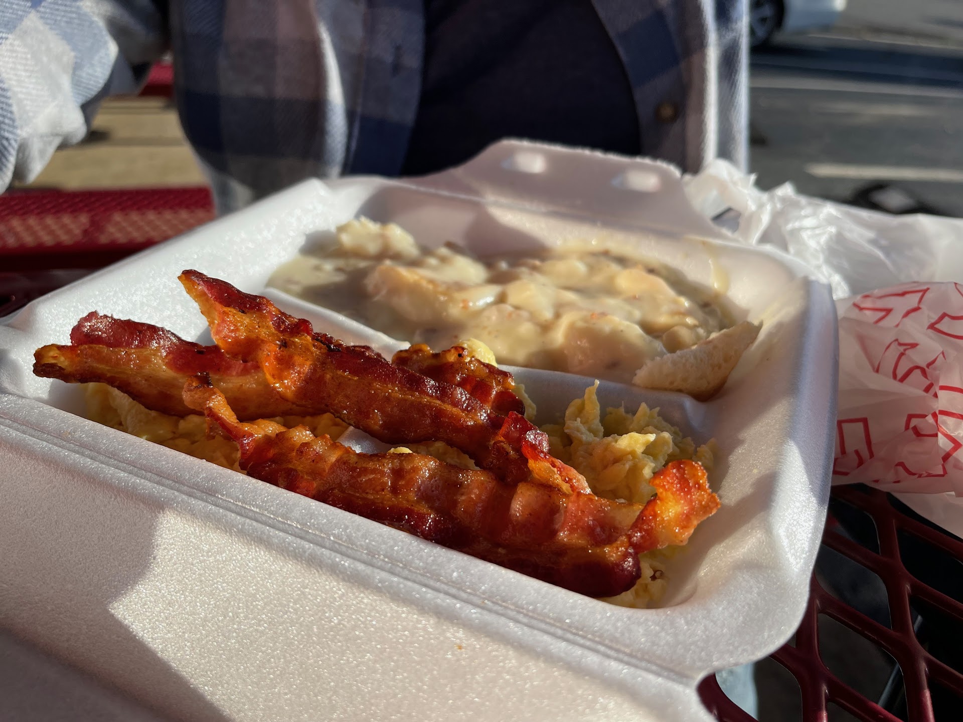 Read moreI am from the South; furthermore, I lived in Blue Ridge in the 80s, and I've not eaten at The Trailer since, but I see all of these grand reviews, so I decided to give her a whirl,but I'm not getting it. The breakfast I chose was gravy and biscuit breakfast with eggs and a piece of sausage. The eggs and gravy had no salt or pepper that I could taste. The eggs are cooked in large batch and sit there awaiting orders; the eggs had brown spots from being over cooked, they were dry and flavorless to boot. The biscuit was good, but the gravy tasted like the first time I tried to make gravy; flour. Then to beat it all they don't have hot sauce.. What self-respecting southerner eats biscuit and gravy, or eggs...