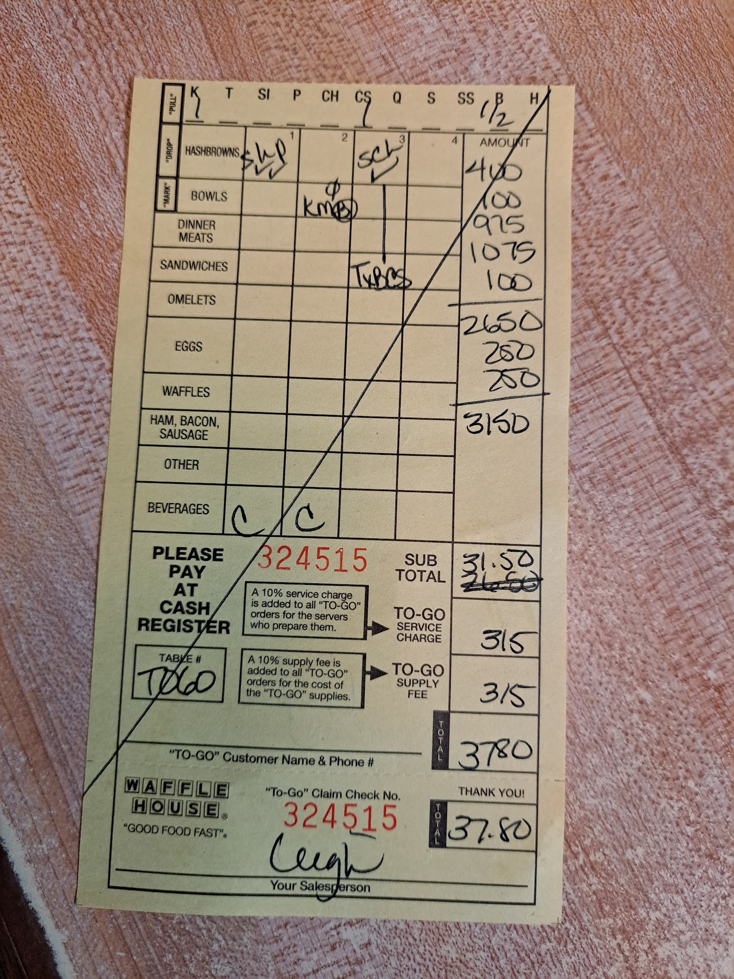 It's a Waffle House, so you kinda know what to expect, but each is a tad bit different due to management and staff, and this one seems to have a friendly & efficient crew. While a bit crowded during my family's visit, we didn't have a wait before sitting down. The food was cooked to order, coffee cups kept full, and our waitress - an elderly woman - was a great pro in the business, and as a former business manager, I got pleasure in seeing how well she ran her job. VERY efficient and an old hand at blowout lunches with a big crowd. Despite the demand the crew seemed great - streamlined work flows and few words needed exchanged to get a job done on a busy, busy day. I was quite proud of them when we finally left, and they aren't even my crew! 😂 Restaurant was clean - from what I could see, behind the counter, too, and the grill kept clean. Even the males bathroom was clean despite the rush. I can't speak for the females half. I get the feeling that this Waffle House, being on a "major" route, stays somewhat busy - but they are able to handle it in fine fashion with efficiency, good food and a quick smile. We'll done, in my opinion.