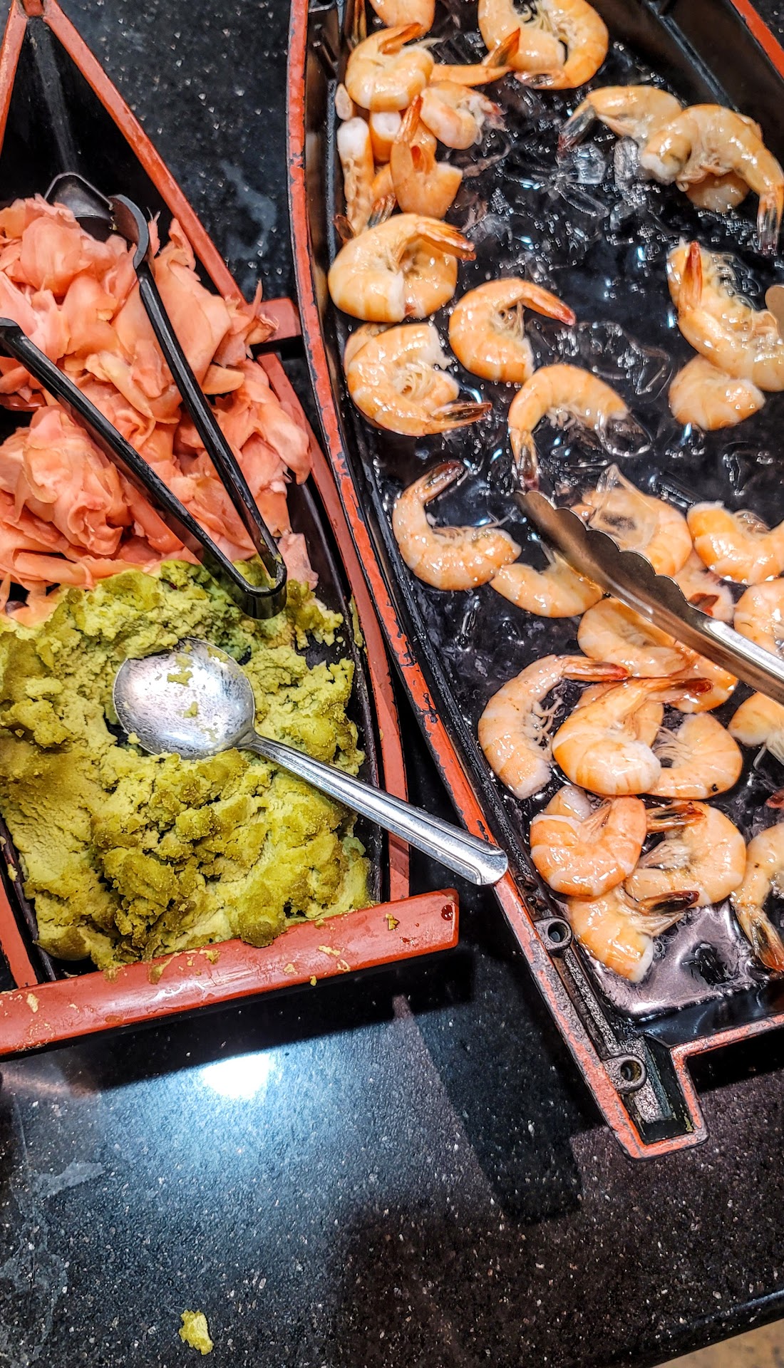 Unfortunately, that’s where the positives ended. The food was absolutely terrible. Nearly every dish on the buffet showed signs that it had been sitting out for a long time — we’re talking dried-out, cracked layers, a film over sauces, shriveled and hard textures, or the opposite: complete mush. Some items had such a strange and unpleasant taste that we couldn’t stomach them. My husband even spit out his first bite of the noodles.