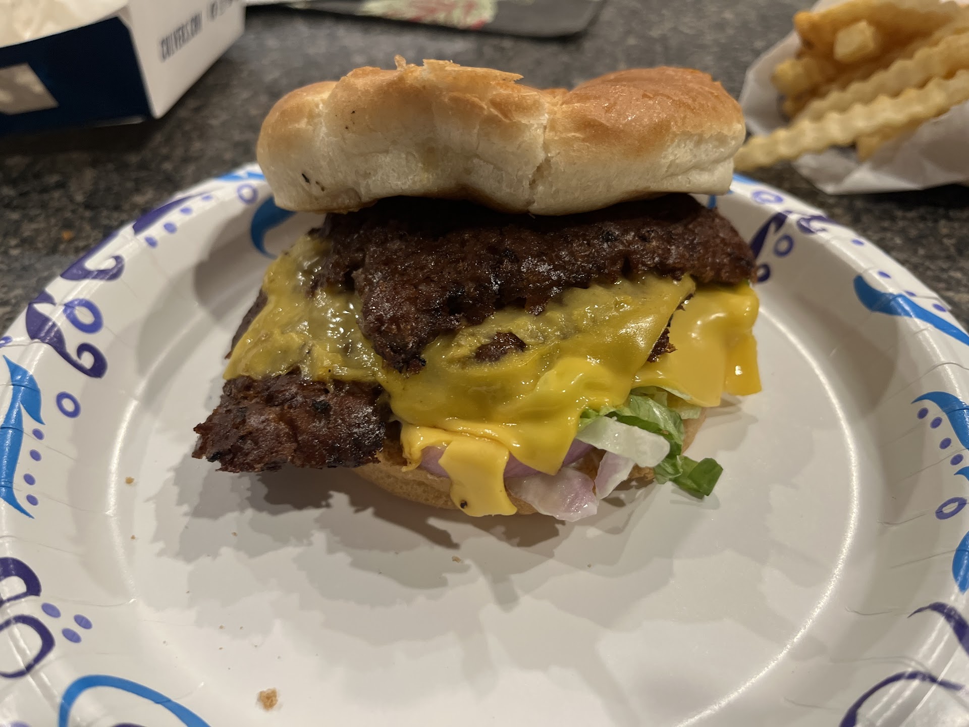 Read moreFirst and last visit. Used mobile ordering for pick up. The images and description didn't align with the products in reality. I ordered the burger on the grilled sourdough bread which I first added as a double then changed to a single because I mistakenly imagined a normal size. I removed the onions and added mayo. The image showed what looked like 2 slices of cheddar cheese. When I finally opened the package what I found was a petrified piece of meat thin as paper and roughly the size of my palm.. So about a 2 inch circle of paper thin meat smothered in onions and what was once probably a similar looking piece of cheese because only this residue of melted yellow in the very center was bonded to the bread and onions which I had to scrape off , leaving the grilled thin falling apart bread and dry falling apart paper thin piece of meat... No mayo was ever added either. For this and the smallest side of cheese curds I paid $11! Curiosity satisfied... I have no interest...