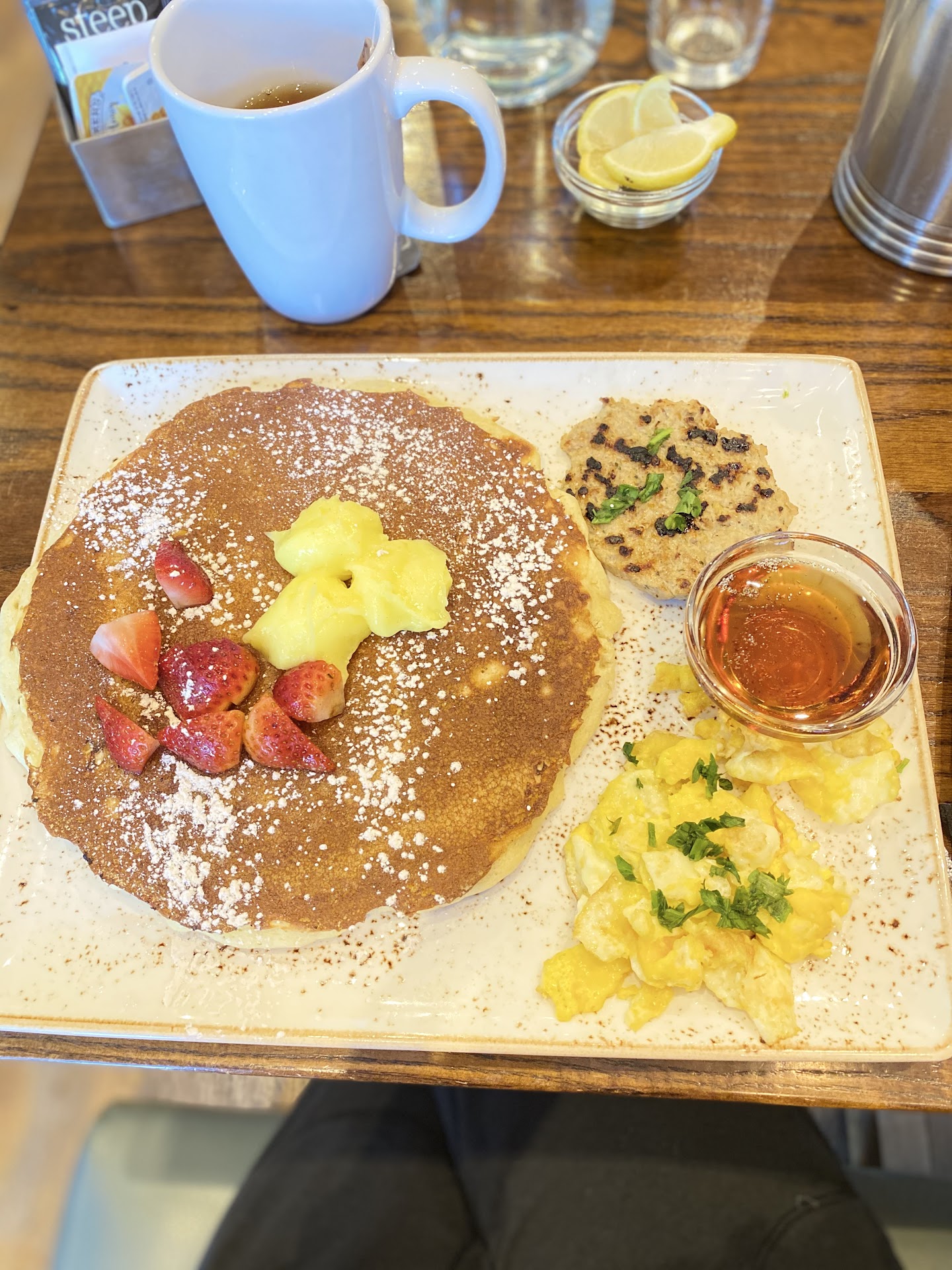 Ā Ā Ā Read moreI was in love with the atmosphere and aesthetics from the moment I stepped in the door. I made it known to the host and server it was my first time at a First Watch. They were very welcoming! They were also very helpful when prompted. I was toggling between the pumpkin pancake trifecta special or the lemon ricotta pancakes. I could not make up my mind. The server told me I could get one lemon instead of two pumpkin in the trifecta. I was sold! However, she failed to tell me it was a $2.50 up charge. š¤ I would have been okay with it had she informed me, but I was a bit surprised when I received the check. š²š . - About the food, the menu description along with the attention to detail in the aesthetics made me think the food would have as much care and beauty. Iām sad to say, I was expecting much more from a description of āmarinated berriesā. From the description of the menu, I imagined more of a two berry blend with some sort of fancy mint or citrus marinade. Well, I received a few cut up strawberries marinated in plain sugar water š. It wasnāt even the good saucy kind of sugar water! š. I asked about the marinade because I didnāt think they had anything on them at all! Perhaps they forgot to put it on? š¤·āāļø..... nope, that was not the case. Over all, I think the atmosphere is wonderful, the service is great, but the food has something left to be desired in order to keep up with the rest of the brand. At $17 for one person, I will be saving this place for a very VERY special...