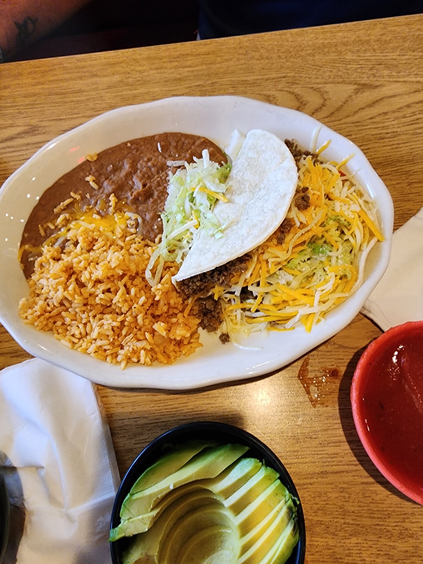 Ā Ā Ā Read moreWe had just finished playing golf and ran to Costco when my husband decided he wanted Mexican food. Being in a different area he asked a random guy where he would go for Mexican and this is where he sent us. What a great spot! A little off the beaten path it seemed but definitely worth it. We started off with an unpictured appetizer sampler, queso, bean and cheese nachos, cheese quesadillas (option to add a meat) and lastly mozzarella cheese sticks, so a little something for everyone. My husband had beef tacos on soft corn tortillas and I had the puffy tacos with ground beef and avocado slices. Both were delicious (The Mariachi on the menu). The meat is seasoned nicely and the beans and rice are on point. I would say the puffy tacos had a better flavor but my husband would say his did, overall a total win! If we're ever in the area we'd stop again. I cannot remember our servers name but she was fantastic. She was chatty and informative and extremely welcoming. She wasn't hovering but our drinks never emptied. You can tell she loved her job and was proud of the food they served, always a nice touch. Don't sleep on this spot, well worth it! Bonus.. ample TV's with a great choice of college...