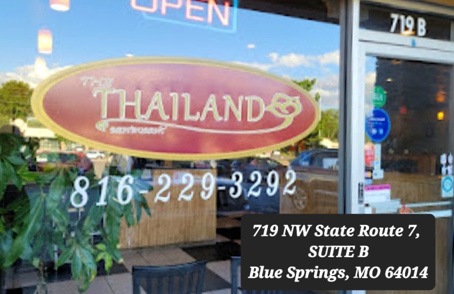 Unsurprisingly this small, quaint THAILAND cuisine restaurant is owned and operated by authentic Thai natives. It is a simple-to-find, unique treat from start to finish because it is in an uncrowded strip mall on 7 Hwy at 719 NW ROUTE 7, UNIT B, in Blue Springs, Missouri. So on I-70, take EXIT 20. You'll see the KC CHIEFS QB Patrick Mahomes' endorsed hamburger joint called Whataburger on the right. Drive just 2 blocks South to discover THAILAND RESTAURANT heaven.