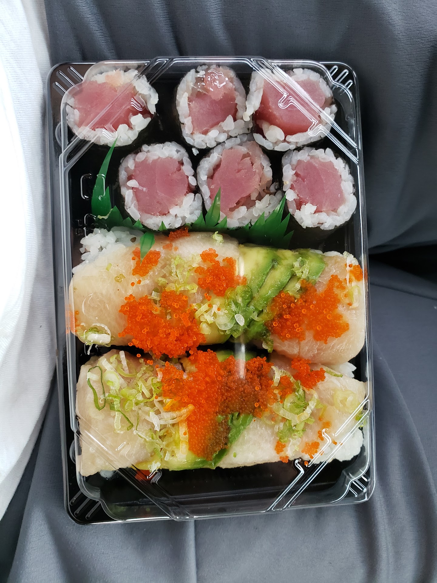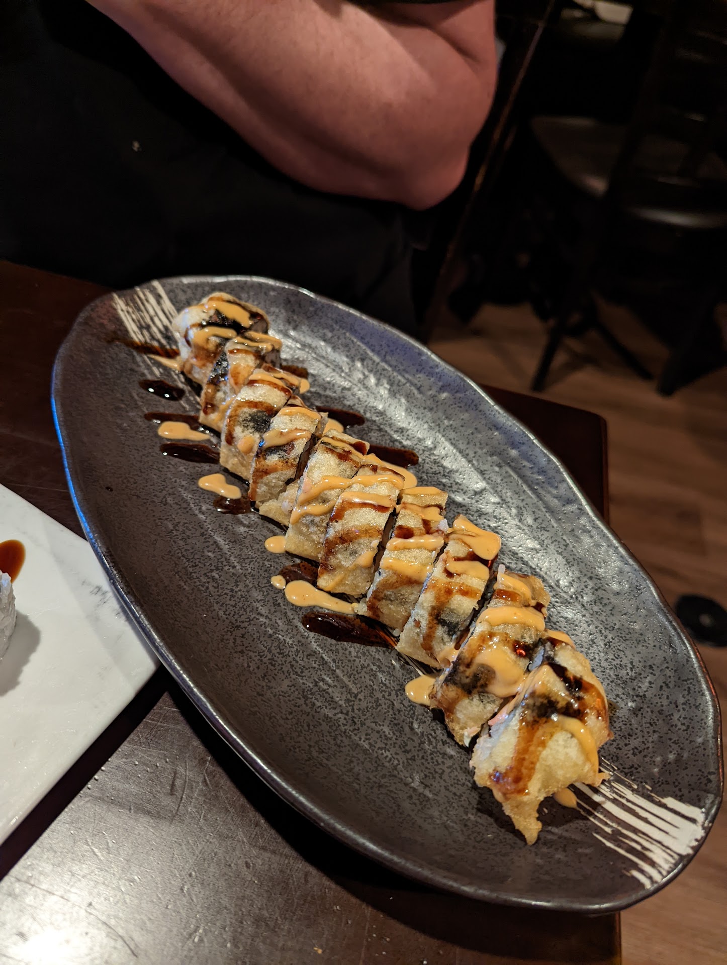 Green tea was just standard ( they did not offer to refill my glass. I had to ask if it came with free refills, yes it does). Miso soup is one of the best ones I've had at a restaurant before, and the seaweed salad was on point. We tend to find that the seaweed salad is a little too sweet for our taste, but this was perfect, it also sat on a bed of cucumber which was a nice refresher after the seaweed.
