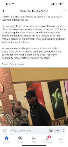 “I didn’t get this mans name, he works at the subway in Walmart in Bluefield, VA.