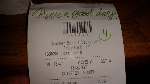 Ā Ā Ā Read moreCracker Barrel used to be a pretty neat place for a family meal. Great service. Good, not great food with above average portions. Cracker Barrel had some kind of sparkle for a chain place. That, sadly, is gone. I have been maybe once a year for the past five years. I used to always order the exact same thing. The marinated grilled chicken fingers. First I noticed, consistently, the portion had become criminally smaller. Then the quality and flavor disappeared. The people I commonly went with expressed common sentiments about their go-tos. Today, I realized their trademark service had upped and disappeared. We had 20+ years of industry experience at our 4-top. We know how to be patient. Our server, however, was set up for failure. She did not need to be out of training. Itās like she walked in with zero server experience and got assigned a section the same day. From an extremely obvious lack of menu knowledge to a lack of knowledge about basic steps of service. This isnāt her fault. This is on management. Which, for having so many floor managers with their arms behind their backs I am shocked it took nearly an hour for one to finally show up at our table and fumble over offering biscuits and cornbread because it took so long. Initially I appreciated the courtesy even if a bit late. Roughly 20-25 minutes later our food arrives. Some cold. Some lukewarm. The casserole tots were BY FAR the warmest item that hit the table. So. Why are you stressing to get me biscuits (and silverware-an hour in) when clearly there is some food in the window getting cold instead of being run. After our biscuit visit we never got another visit from a manager. I donāt know if there is apathy that comes from even higher up...but this isnāt Cracker Barrel. And. Let me point out while I am certainly one that loves a cold beer with my meal....beginning to sell alcohol is a clear grab for sales. It looks very poor on a well-established culture. I really hope this gets turned around. However, it appears company wide the environment has gone toxic. Only a matter of time before a ton...