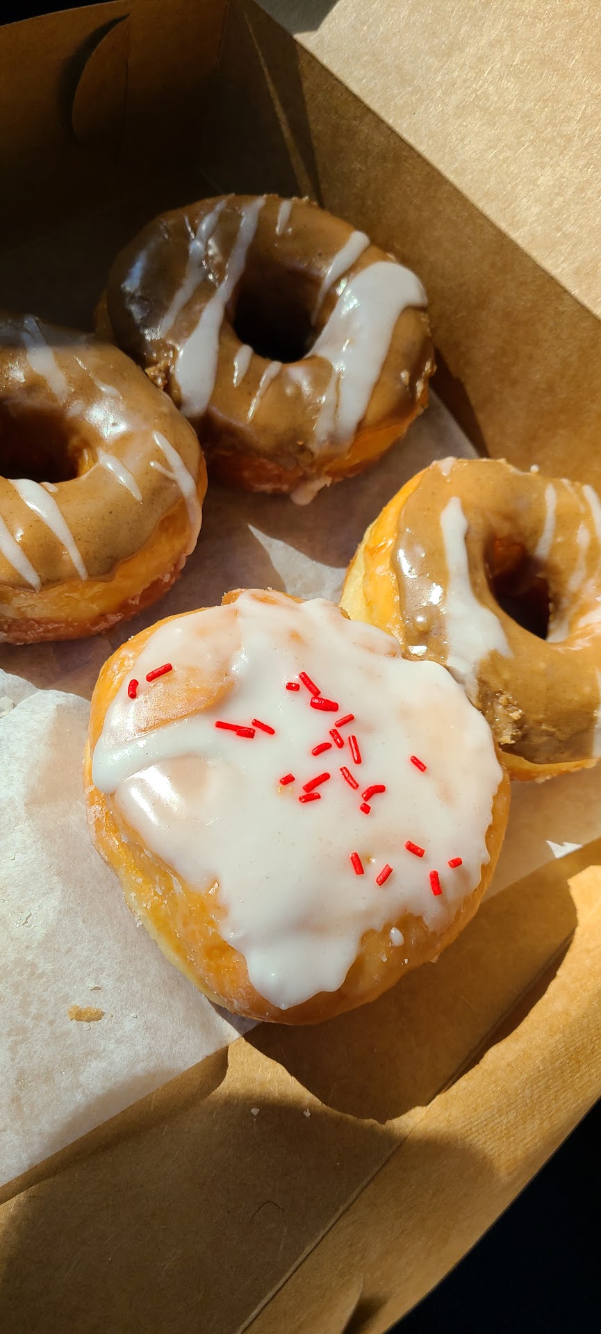Read moreCute doughnut shop with nice outdoor seating and decor. They had a wide selection that changes frequently. Although so many people have raved about this place to my husband and I, we found them to be just okay. Maybe we came on a day where the batch was off just a little bit but of the 5 flavors that we tried, they we average to just above average. The toppings were fun but the doughnuts were thick, heavy and dry. It’s a cute shop but probably will not go out of the way to bring visiting friends and family here. Probably just personal preference but I like my doughnuts to a little bit thinner and moist. May give it one more try on a another day to see if there’s a difference...
