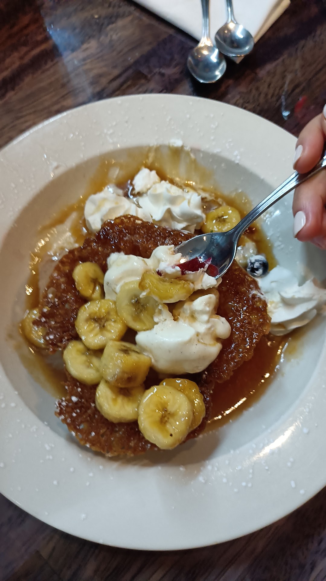 Read moreWe were celebrating my birthday and so we decided to try May River Grill despite the prices. We had a 5:00 reservation and when we arrived, they sat us at a tiny two-top table right in the main pathway, even though 90% of the tables were available. We asked for another table and they obliged. We had Sangria - very good! The waitress was sweet and knowledgeable but needs some training on basic table maintenance. She was quick to clear the Sangria glasses even when we weren't finished, but then didn't clear used plates. We had to use our egg roll plates for bread plates. The egg roll was different, but good. It was $11.50. I ordered a chopped salad. It was 9.50 for a side salad, so I was really looking forward to it. The presentation was nice but sadly it was small, tasteless and really salty. My husband ordered the duck, which was crispy and moist but the sauce was more like a jelly and was overpowering. I had the stuffed shrimp, which was good. I loved the mashed potatoes and veggies were good, too. At the prices being charged, we should have top notch service, comfortable table, warm tasty bread and a salad that doesn't...