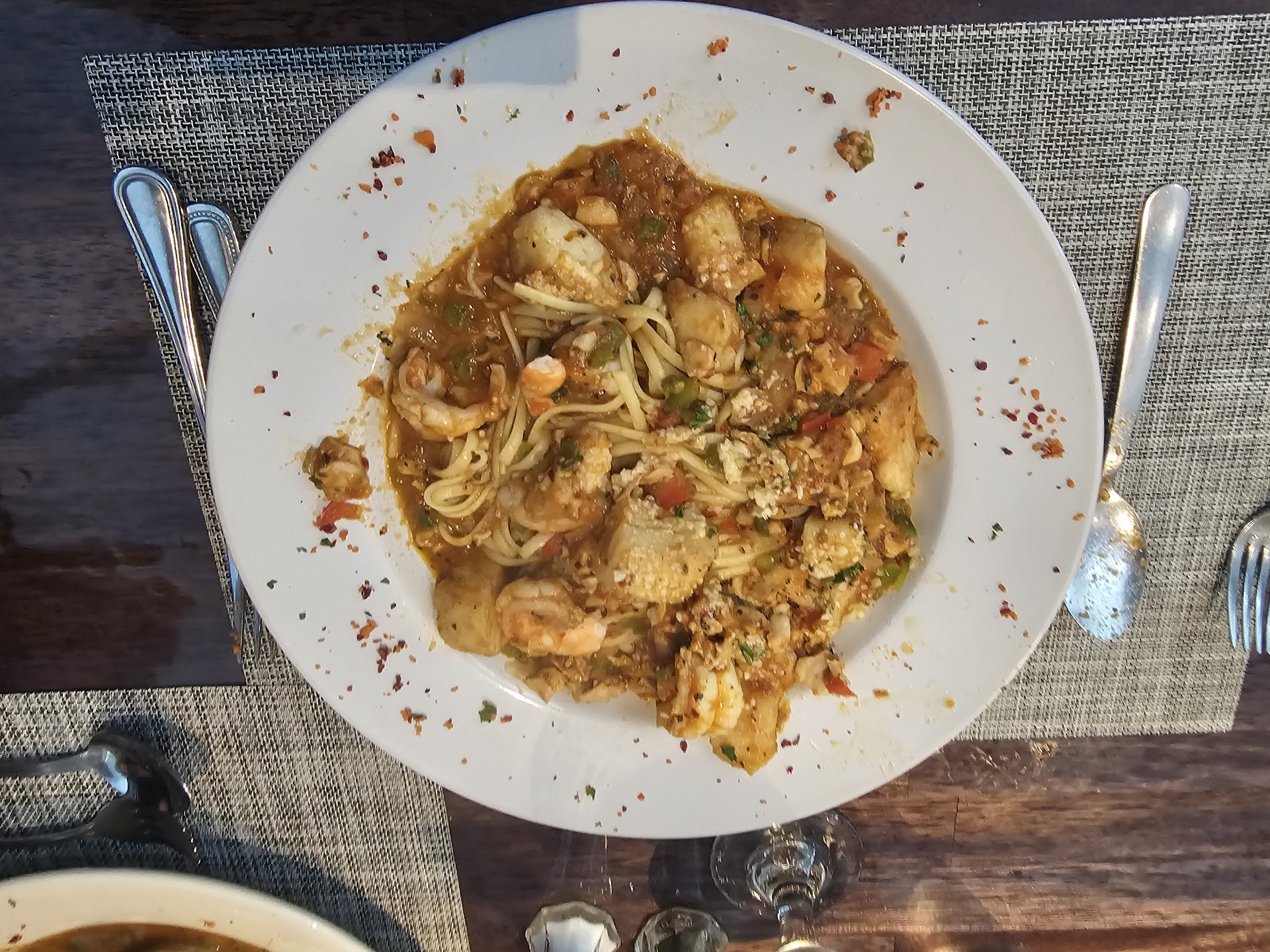 Read moreQuaint small spot. Our waiter (feel bad I don’t remember his name, slim young man with dark hair) was very friendly and attentive. The crab and shrimp egg rolls as the app stole the show, they were amazing, perfect crunch and flavor with nice but not overwhelming heat to the chili sauce. For entrees I had the veal with mushrooms and my friend had the fish special with tomato basil sauce at the waiter’s recommendation. The portions were large, and in both cases the sauces were outstanding but had to save somewhat dry meats. Not sure how you get chewy veal especially when pounded flat like that. Both meats were overcooked but saved by the sauces. The mashed potatoes had nice flavor and perfect consistency. The vegetable blend was very bland though, needed some seasoning or a sauce as well. The outstanding service, sauces, drinks, and appetizer tipped me from a 3 to a 4 in spite of the very bland veggie side and overcooked proteins. Overall a decent meal, I’ll go again and maybe try a vegetarian option…with a sauce, the eggplant...