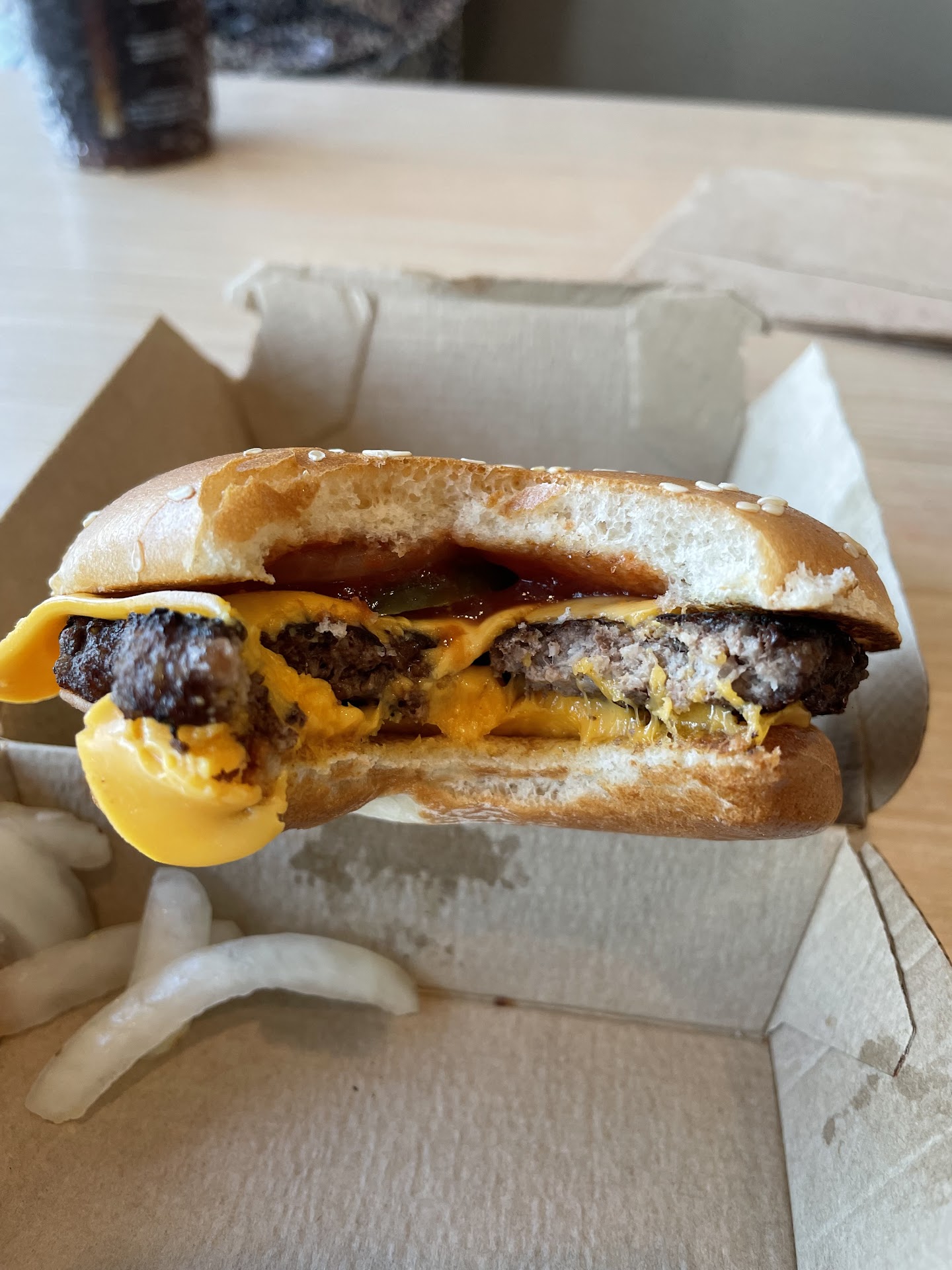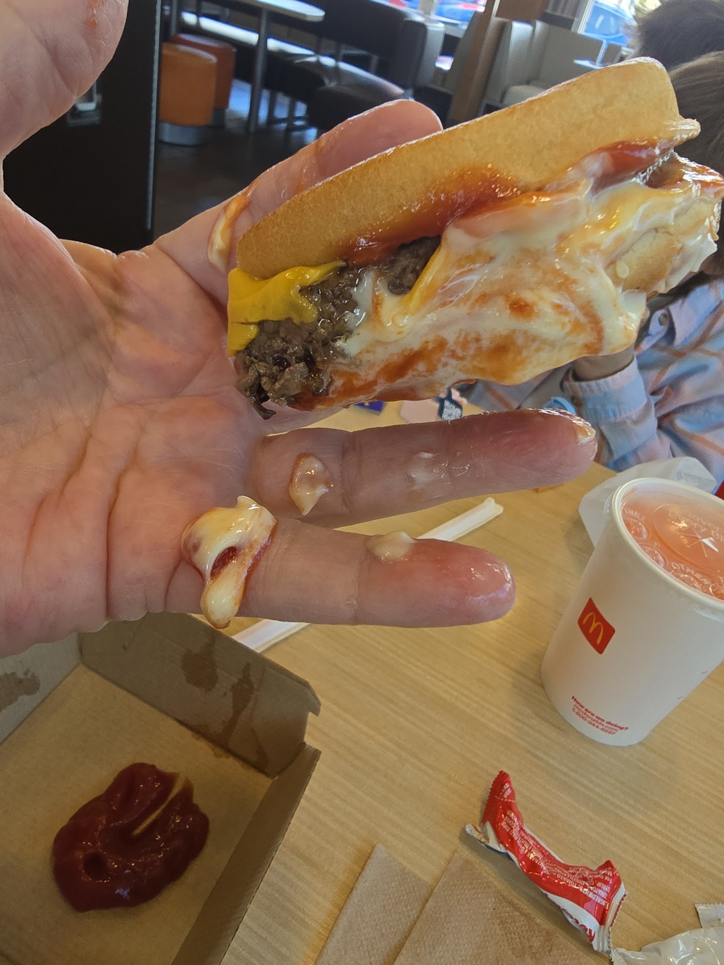 Read moreANOTHER UPDATE: First, I apologize for encouraging people to come to the McDonalds dine-in to keep them open inside. It's not the service. I could hear someone in the cooking area barking many orders to get things done, and I received my order pretty fast, in the dining area. It's not the atmosphere. The restaurant is clean, comfortable, no real complaints. IT'S THE FOOD! I used to look forward to a juicy hot quarter pounder with cheese, or a big mac. Today (not sure why just today), I realized what is hidden in all that sauce and lettuce. It's dried up, very thin patties that don't even fill the diameter of the bun! I've added pictures of what you get now when you order a quarter pounder with cheese. Take a very close look at it and tell me that you want to order this. By the way, this patty is thicker than the regular hamburger patty. Really!!! I am soooo disappointed at the McDonalds organization for letting their food get to this point. Look at the pictures. They say everything. The least that management could do is not cook these patties DRY and burnt looking. Sadly, this life long lover of McDonalds is giving up! See ya!!! You've lowered yourselves to the level of Sonic, and that is low...