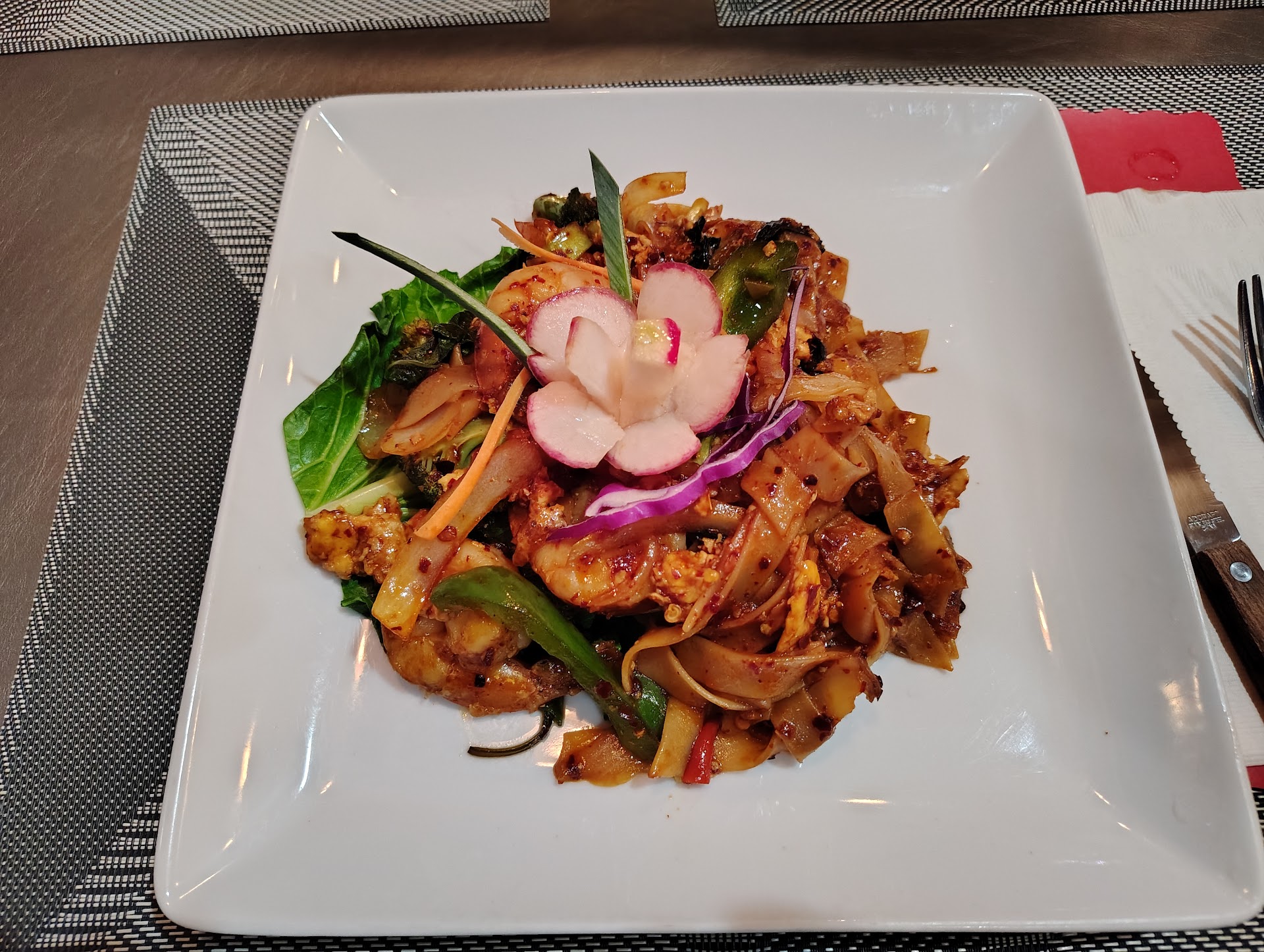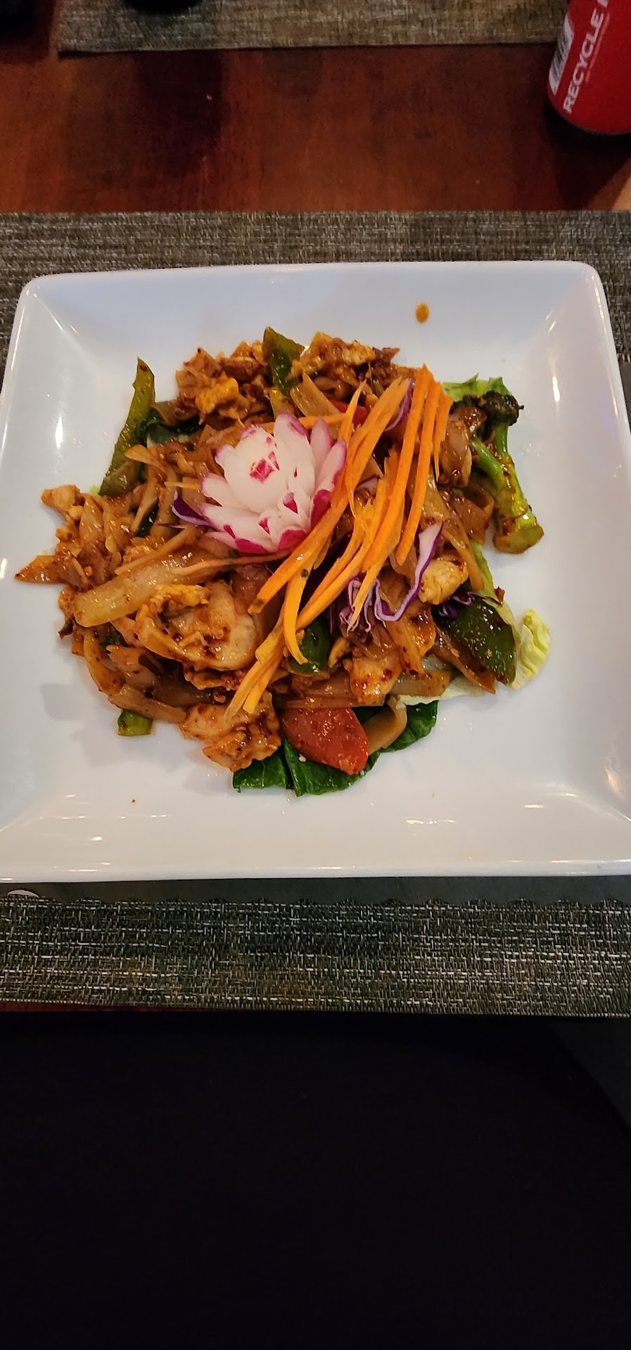 Read moreThe food tastes good, and I don't mean to sound like a jerk, but this place is very overpriced. It costs over $16 for basic beef pad thai, and you only get about 4 very small pieces of beef, and about a $5 portion of noodles compared to every other Thai restaurant I've been to. It's kind of hard to not feel cheated. Putting a fancily cut radish on top of the same old pad thai you can get anywhere does not triple its value. They have also overcharged my boyfriend and I on multiple occasions and we very awkwardly had to correct them that they gave us back $10-20 less change than what our bill totaled to. I love Thai cuisine and really want to love this restaurant...but its hard to appreciate the food when you feel like you're being taken advantage of...