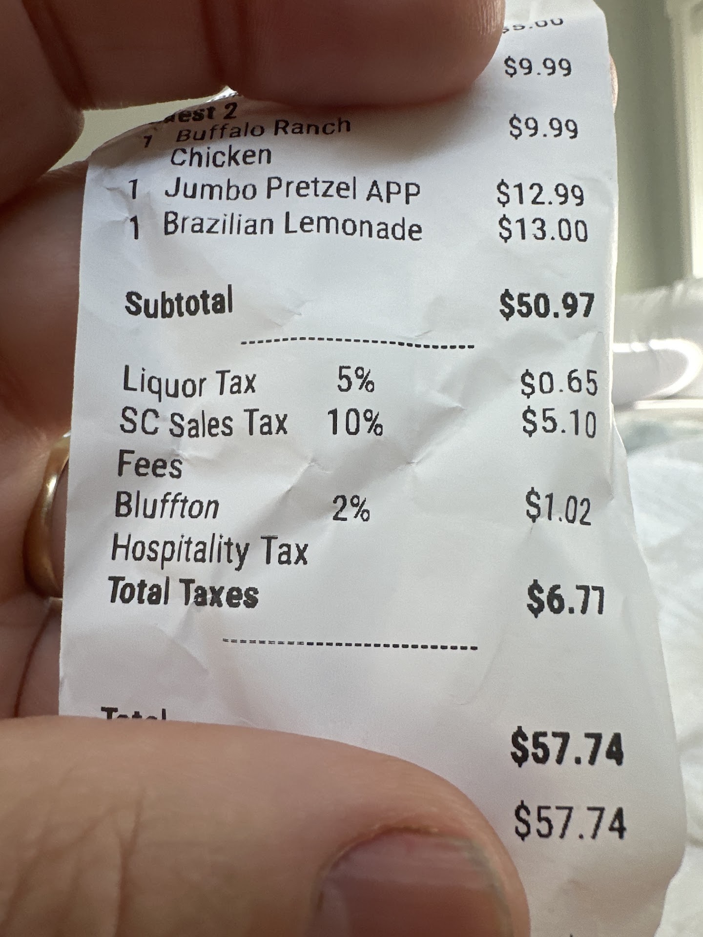 We get our actual receipt this time and we are charged 50 dollars for 4 sliders and grilled cheese for my son.