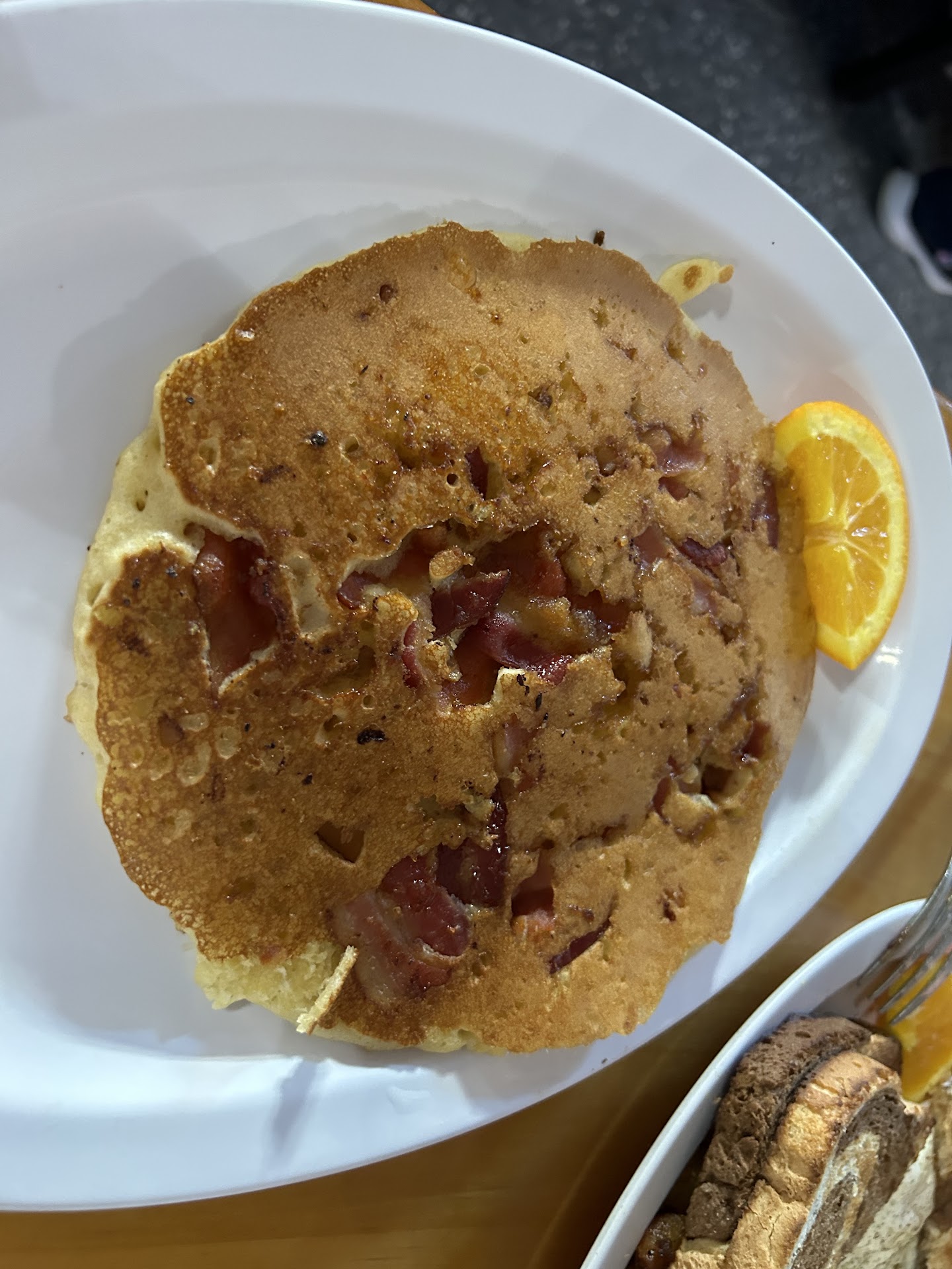 Quaint locally owned spot, love that they serve breakfast all day (well until 3 pm when they close). You put your name on a clipboard just inside the door and they call you inside when your table is ready. We had to wait awhile for a table, but they have outdoor tables and chairs you can sit and wait at…which in theory is great. Not their fault, but there was a pile of (dog…hopefully?) feces near the outdoor tables, kind of off-putting. Almost left because of the smell. But glad we didn’t. The ambiance is quirky inside the pretty small dining room, lots of different signs and photos (some cool, some sorta creepy) all over the wood paneled walls. Fun to peruse them while waiting for food, several conversation pieces. Once we were seated, our server came quickly and was very friendly, and got our coffee nearly immediately. Waters and coffees were refilled with consistency throughout our meal. I got the “hangover cure” (not because I was hungover but because it had a bit of everything from the breakfast menu to sample) with a biscuit and subbed brown bacon gravy for white sausage gravy (never been a fan of white gravies). I appreciate they were willing to alter the dish for me. Unless you are a die hard sausage gravy fan, I recommend the sub, the bacon gravy was great!!!! The grits and the bacon were also, and my eggs over medium were cooked to perfection. The sausage was a bit flavorless, more like overcooked ground beef. I just ate around it since there was more than enough food on the plate! And the biscuit had good flavor was just sort of dry and heavy. The only reasons for the reduction of one star. Wish google would allow half stars. The hash browned potatoes were amazing though, clearly hand cut, well seasoned, and homemade! I’m glad I overheard a server say to another table to just go to the register when they were ready to pay, know that they don’t pick up the check from the table! I’ll def go again and now that I know my preferences with their offerings I’ll be able to tailor my order better! For sure recommend this place for a home cooked and reasonably...