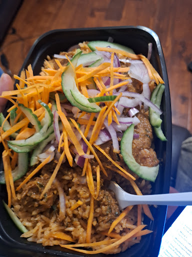 Read moreHeard about this restaurant and thought I’d give them a try. I stopped in around lunch time and I really had no idea what to order. The young man who prepared my food was so patient. He provided more than a few samples to help me figure out what I wanted because I was completely unfamiliar with their foods/flavors, and he built my bowl. Momentarily, the gentleman stepped to the back to top my order with cheese (as requested), I paid, and seated myself to dined in. Since, this is a newer establishment, I’ll give them a little grace on the decor and hopefully they’ll do more in the future. I have to add that, thankfully, their “bowls” are plastic with snap on lids…..which means my food and juices can finally stay together. However, sturdier plasticware is needed.