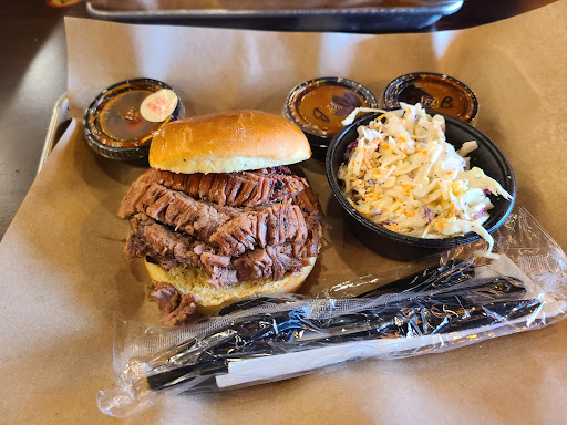 Read moreAverage is being kind to this place, mind you I only had the brisket sandwich and peach cobbler. I think you should be able to get one or two items and base a pretty solid review on those two items. Some would say that simply isn’t enough data to base an honest opinion and while that does make sense to me I wouldn’t necessarily agree, that being said this place was pretty average and nothing really made it stand out to me. I had the beef brisket sandwich(lean as opposed to wet), it was dry which is how I wanted but it was so dry and I feel like an excessive amount of smoke was used in the cooking process which made it look awesome but it did make the flavor weird. The brisket tasted nearly identical to beef jerky and not a very good one either, like a very chemical/carcinogenic taste. I should’ve gotten the pulled pork(I’ve had people tell me how good it was), no Cole slaw just meat on a bun. Sauce on the side, at pick up they ask what sauce you like and they gave me one of each(sweet vs. spicy) and I should say the sauces were average at best, no napkins, no fork, no nothing I guess you gotta get it yourself which I did but for $18 the bag of food I got looked pathetic. The peach cobbler was a diabetic nightmare, sugary as fu*%!, just a blob of sugary dough and peach chunks. Over all very unimpressive experience(much like most restaurants in the valley), I would’ve rather had gone anywhere else. Cockeye bbq in Warren so far has the top spot in my limited view. This just makes me appreciate & miss Shrivers BBQ in broward county Florida. Now that’s actual bbq.