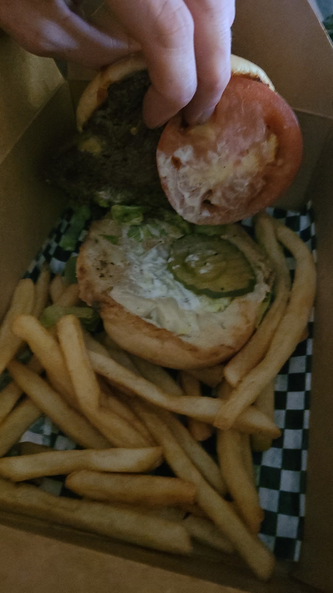 Then my food came. I had ordered garlic Parmesan fries. What I got had vinaigrette on them — definitely not garlic Parmesan. I was told “that’s how we do them.” I had to nearly demand they take them back. They eventually did, but it was awkward.