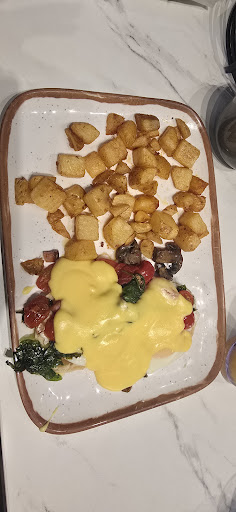Read moreThis was my first time eating here and wish I could say it was a good experience but sadly it was not. I ordered the florentine eggs benedict and when it came out I noticed 3 things. First, the tomatoes were cooked (after I confirmed with the waiter that they would be freshed, second that the egg was undercooked and third and by far the worst there was some meat in my meal. I do not eat meat. I let my waiter know who took it back. When he brought out the redone meal. It was not what I ordered but instead an spinach, pepper, onion and mushroom omelet. I was baffled. At this point the 3 other people I was with felt terrible because they didn't want to eat their meals while I was sitting there so now their meals were cold and I had the wrong meal. I don't like peppers or onions but I just ate some of that meal so the others wouldnt have to sit there again. All that was done was my meal was comped after I insisted that happen. So the meal I didnt order or want was comped. Didn't even credit my orange juice or the other person on my check. When the other 3 people were impacted as well. I really wanted to like it here as breakfast is my favorite meal and the wait was crazy but sadly we will not be returning after...