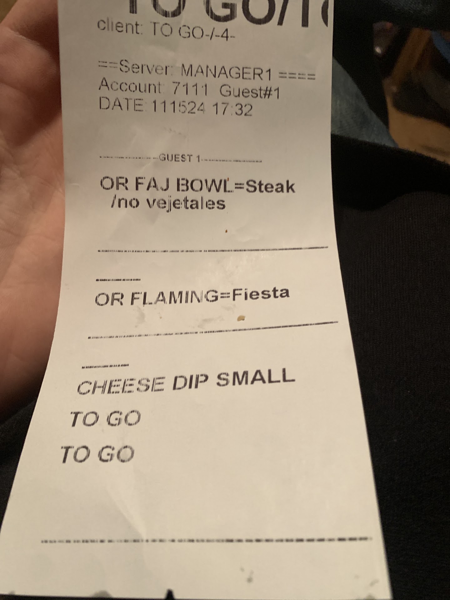 Read moreThey will charge you 20 bucks for chips and salsa. If you say hey last time I came you didn't give me enough chips I don't want to have to go to Dollar general and get more chips they will point you to the chip prices. Then when they bring the chips they will give you the smallest bag they have and only one of them last time I got three this time they went even further. The guy said this good? Well let me tell you last time the chips were super stale anyways. Even worse than the chips was that guy's goatee. Seems like he's keeping the chips all for himself by the look of it. They had another owner guy that hangs out at the other one now I guess this guy is too annoying for him. Overpriced food let's see how villa fiesta does next time instead of this dump. Going there for their chips today! Much more reasonable prices! Plus the workers won't taint your food if you complain! This looks disgusting throwing this slop away and asking door dash...