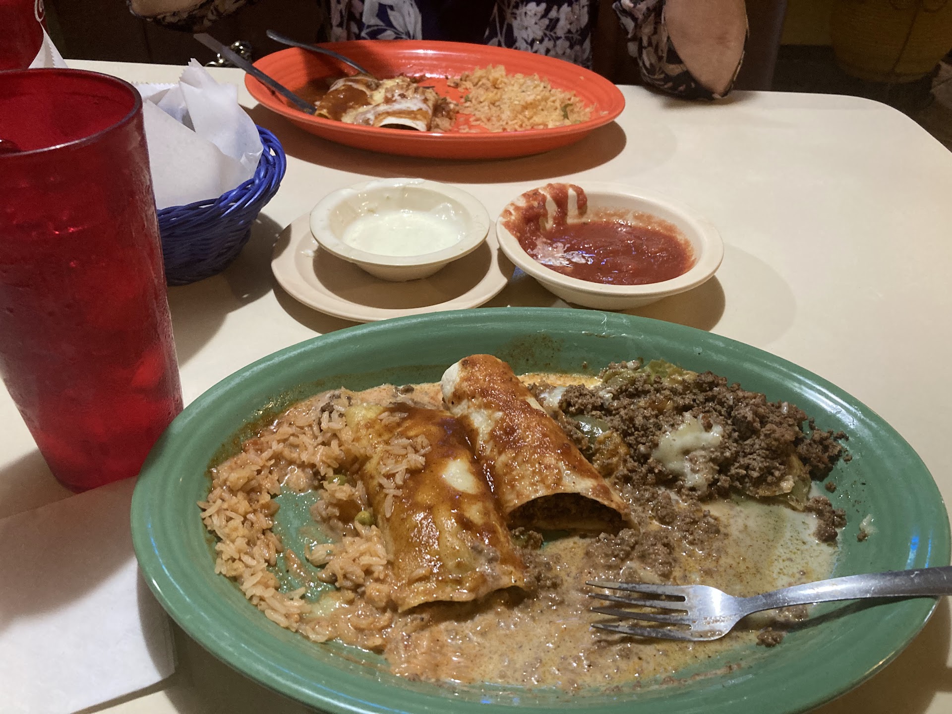 Read moreI have left great reviews on this location in the past, I have deleted them due to my visit today. I ordered the burrito verde as I usually do, and the chicken was cold. Despite the restaurant being mostly empty, I was finally able to flag someone down after waiting 6 minutes searching for a waiter. They did reheat the plate for me but I still could not eat it after that. I'm not sure what was wrong with their chicken, but it seems like if you go after 3 or 4:00 p.m. before the dinner bustle, they just feed you cold lunch leftovers. I have always loved eating here, but after today I will need to find a new Mexican establishment. I paid nearly $20 and could not eat that slop. They could have at least tried to meet me halfway considering they only reheated it, pico and everything, and it still wasn't edible. What happened Los arcos? They must be under New Management because I'm shocked at the food and the service compared to every other pleasant visit...