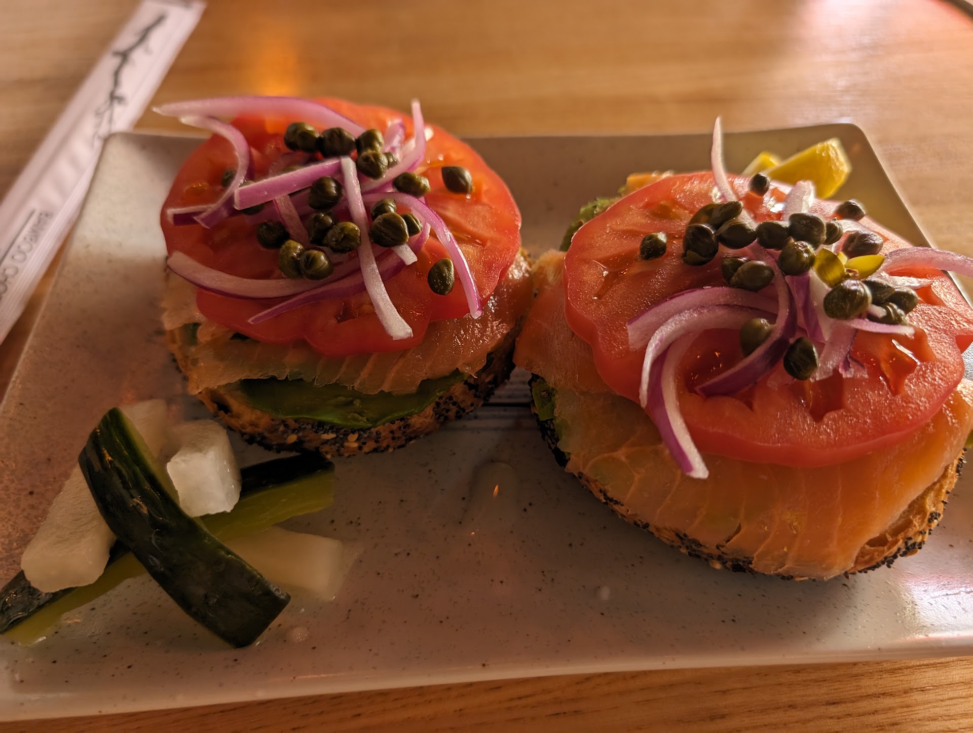 My wife opted for the house-made everything bagel with salmon and avocado. Hailing from Connecticut, she's a discerning judge of bagels, and she couldn't stop singing its praises. After trying a bite, I'm tempted to order the bagel myself next time.