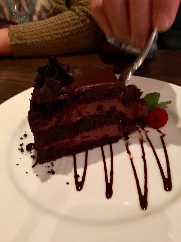 For dessert, we shared a piece of their Vegan Chocolate Fudge Cake. It was DIVINE! My favorite part was the chocolate fudge-like icing on the top of the cake.