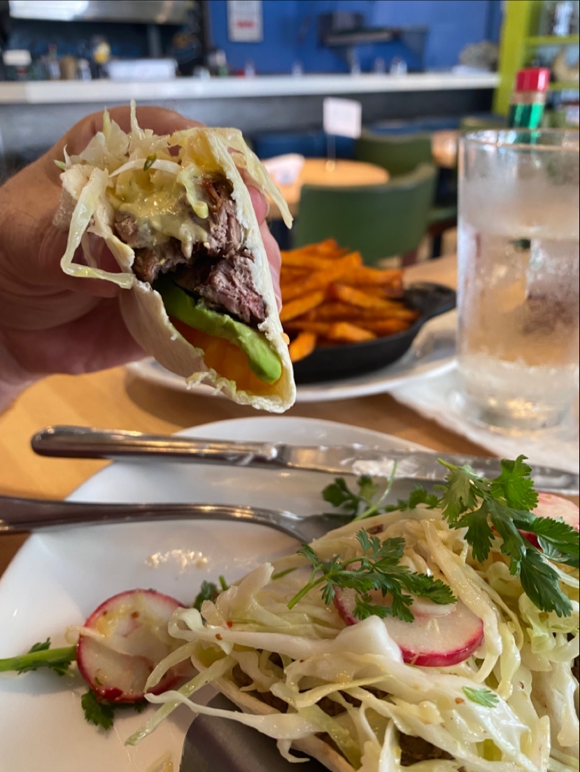both were delicious. i wasn't a fan of the pickled onions as they added nothing to my avocado toast dish, and the sweet potato fries were crispy and paired well with the ketchup. before i requested the ketchup, however, i was brought a maple/balsamic sauce- let me tell you; that was not it. it was more of a soup? and had WAY too much cinnamon in it. no biggie, i pushed the little dish to the side, and continued my meal. when i asked my mother about her truffle mushroom pizza, her response was "good!" as i pressed some more, she describes the dish as "not mushy. it was crispy enough- not potato chip crispy, but crispy. the size was fair, and the quality of the ingredients were fresh, especially for a cauliflower crust, gluten free pizza. an honest gluten free pizza. it isn't a 5-star pizza, but i'd definitely order it again."