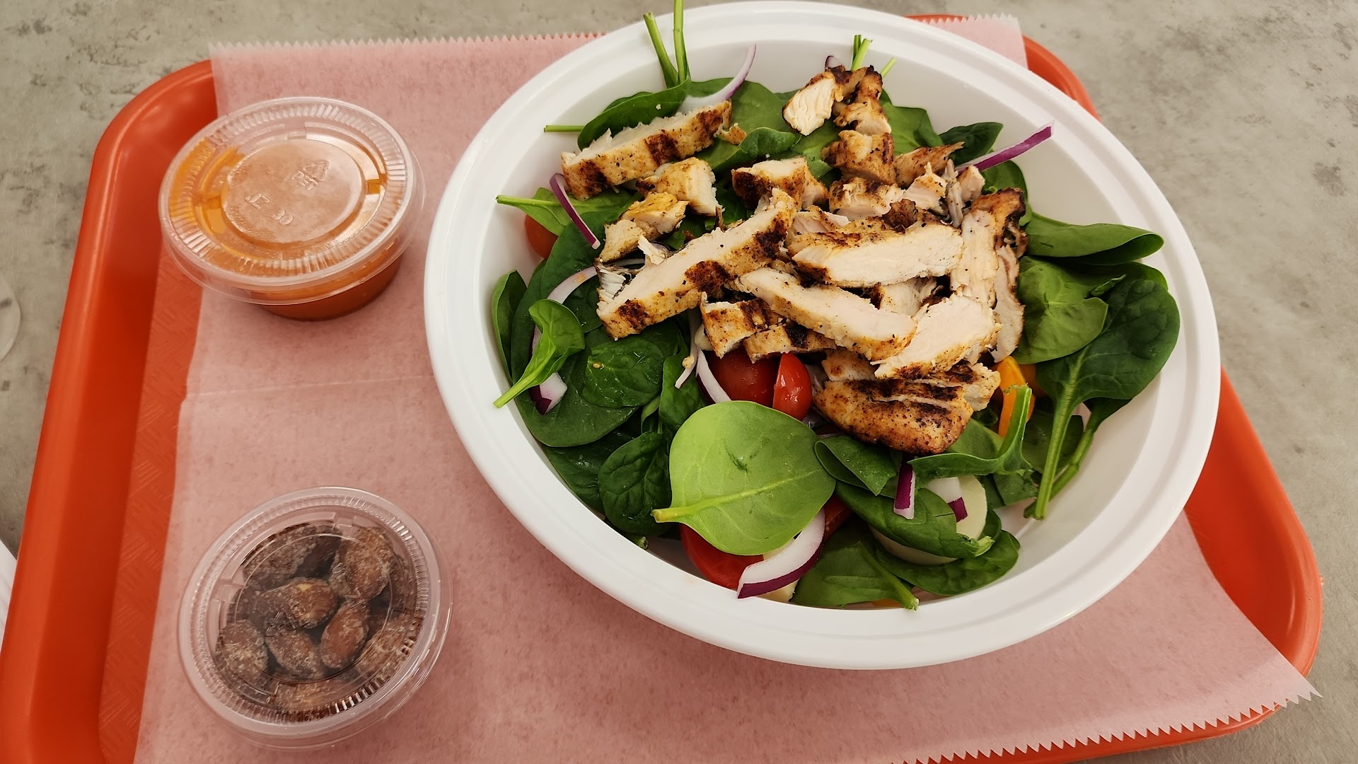I just enjoyed a delicious chicken salad for $16. The food felt incredibly fresh and light—none of that greasy feeling you sometimes get from fast-food places. There’s a certain homely feel to the food; it’s clear they put a lot of love and care into their dishes while keeping things simple.