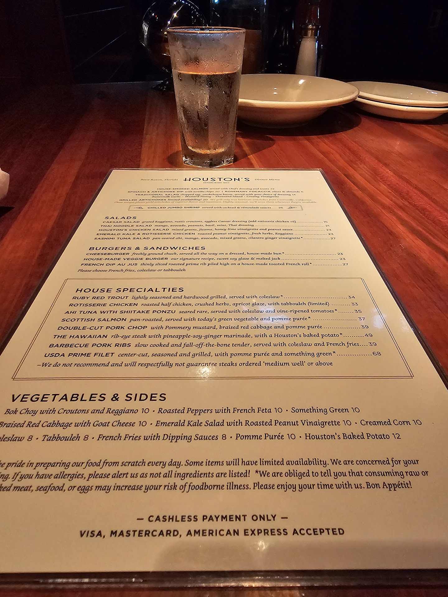 Value for Money (5/5): While Houston's may not be the most budget-friendly option, the exceptional quality of the service, food, and drinks justifies the price. It's the kind of place where you get what you pay for, and in this case, it's an unforgettable dining experience.