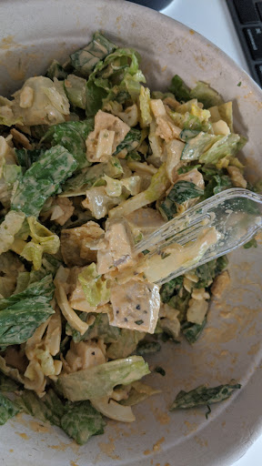 This bowl contained a lot of unusual items such as black beans but they were chopped and made a great protein addition without being overwhelming to anything else in the salad. This is a HUGE salad and don't expect the greens to be what takes up so much space. Hefty portions of roasted sweet potato, delicate sliced apples, chunks of grilled white meat chicken - everything tossed by hand in a stainless steel bowl. You'll be asked if you prefer a light, medium or heavy hand with the dressing (more smarts!), prior to being served in your recycled paper bowl.