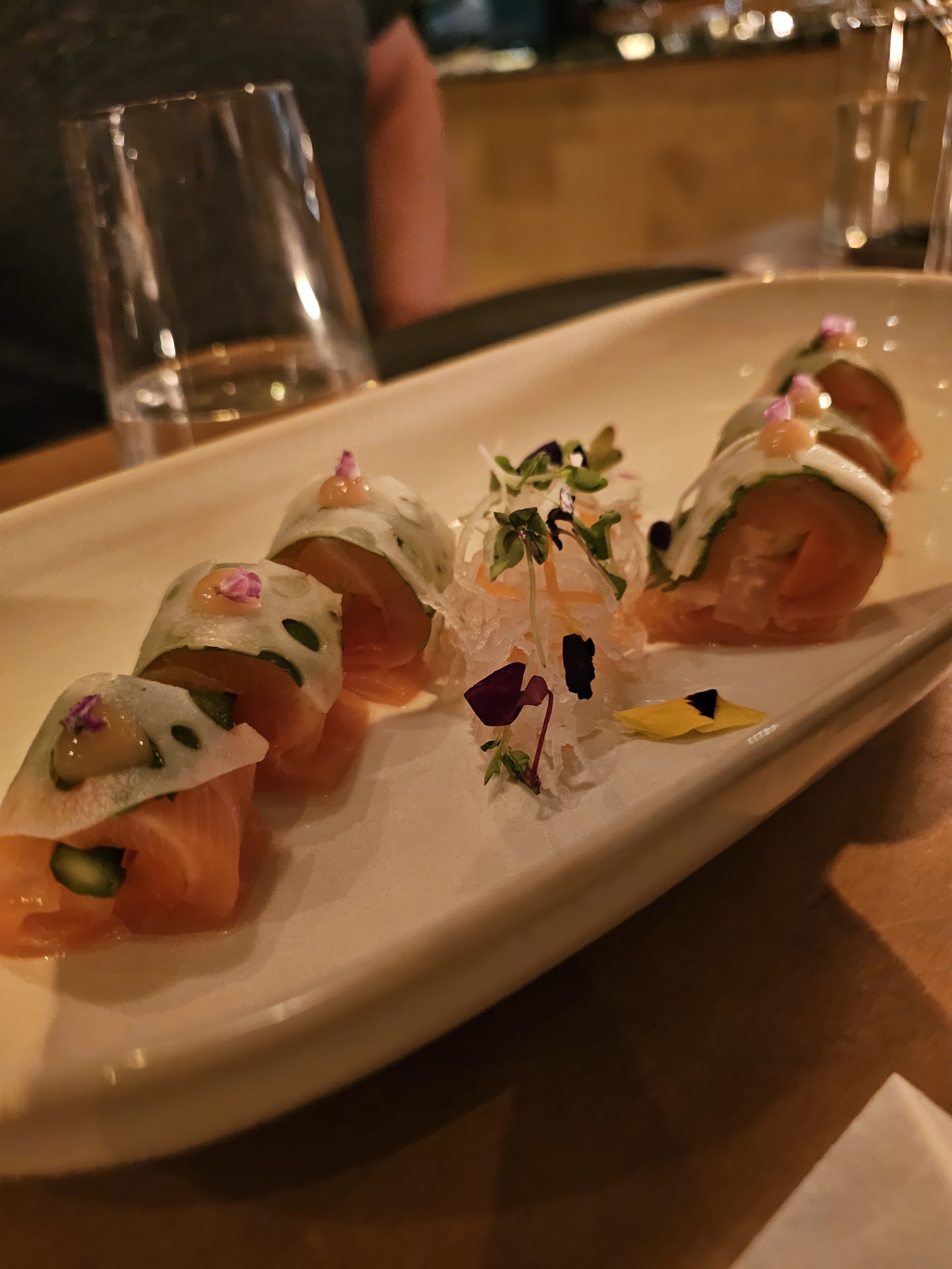 The attention to detail extends to the table settings, which are as beautiful as the food they complement. Even the wine glasses impressed—a rare but welcome touch. It’s clear the team put a lot of thought into creating a refined, visually appealing experience.