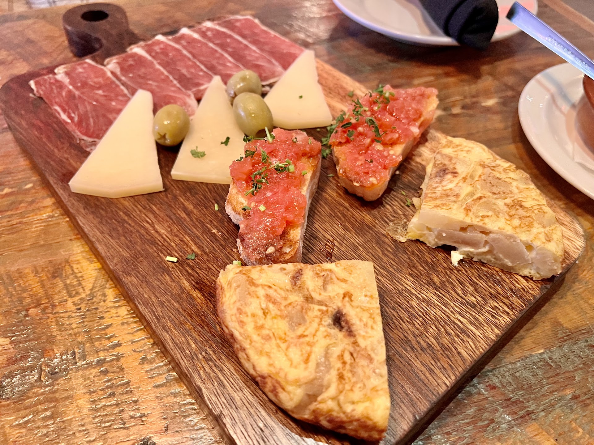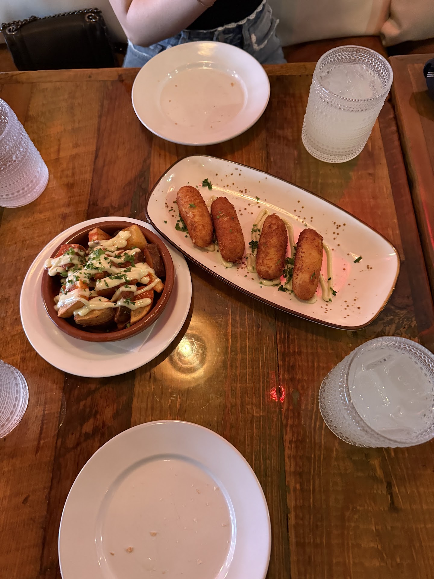 Read moreI was hopeful and hungry for tapas and some authentic Spanish food. While the atmosphere was nice the food did not impress me. I left generally disappointed. We went early to catch the happy hour specials which were reasonably priced. They provided their regular menu, the happy hour menu and their Monday special menu. We were told we could only choose either the happy hour of the Monday specials and could not order from both. Give that I wanted to try the paella which was not on the happy hour menu we went with the Monday specials. Here is what we had. The red sangria was good. The ham croquette's were pretty good but lacking a flavor blast. The calamari also pretty good but not the most tender I have had and only rings no legs. The garlic shrimp was probably my favorite thing of the day, besides heir table bread which was great although their olive oil had little flavor. Shrimp cooked perfectly and actually had great flavor. The tabla variada charcuterie was good but again not mind blowing. We then ordered the paella valenciana which was probably the biggest disappointment. So flavorless! The only thing that had a decent taste and flavor was the chorizo which was sparse. The rice was also overcooked and mushy. We ended with their cheesecake which was very good. Light and creamy. We usually don't get dessert but my wife was still hungry since she did not like most of what we ordered. Glad we did or we would have left even more disappointed. So sad that this place let me down. I really wants it to wow me. Oh well back to The Patio in east...