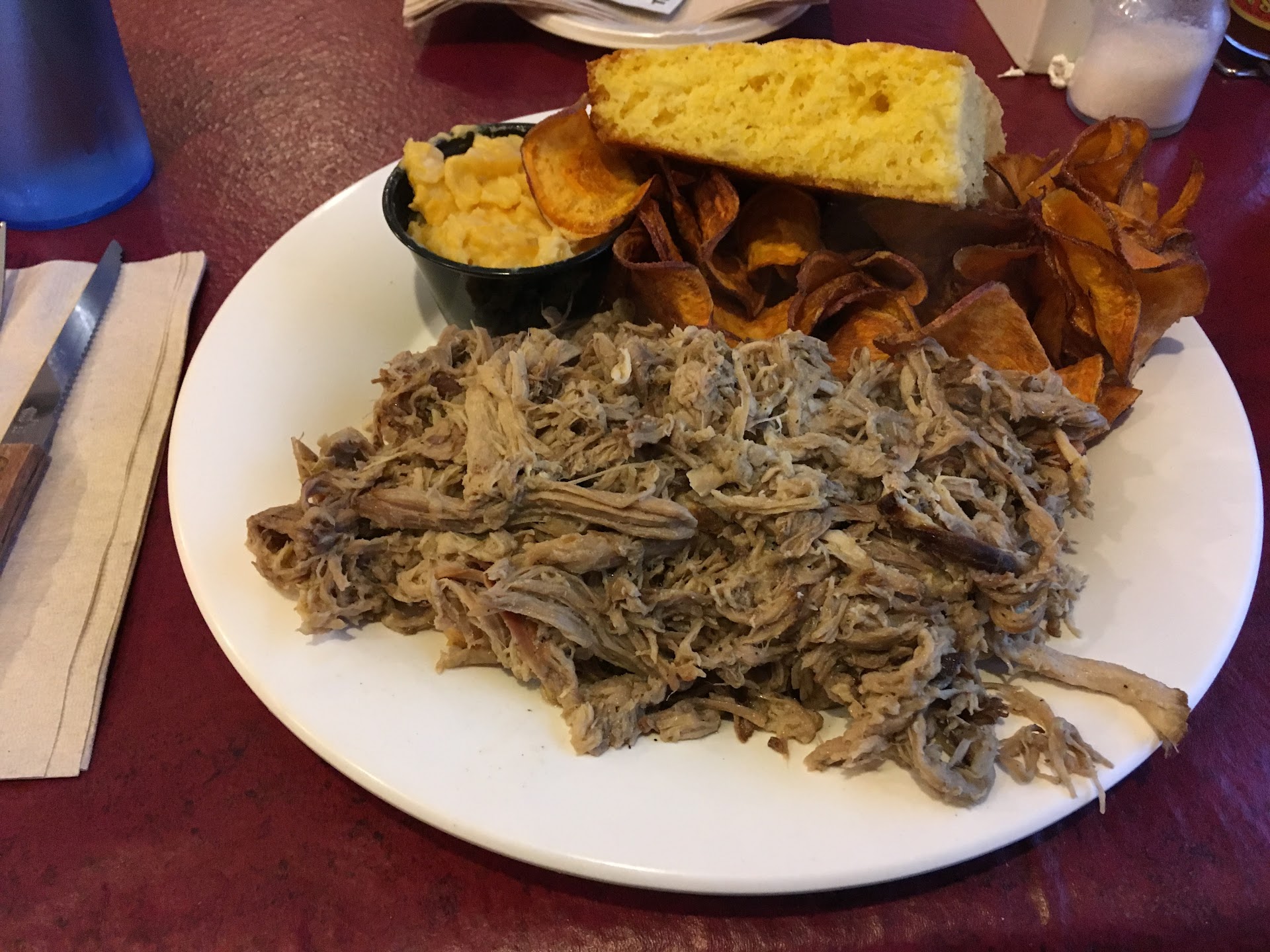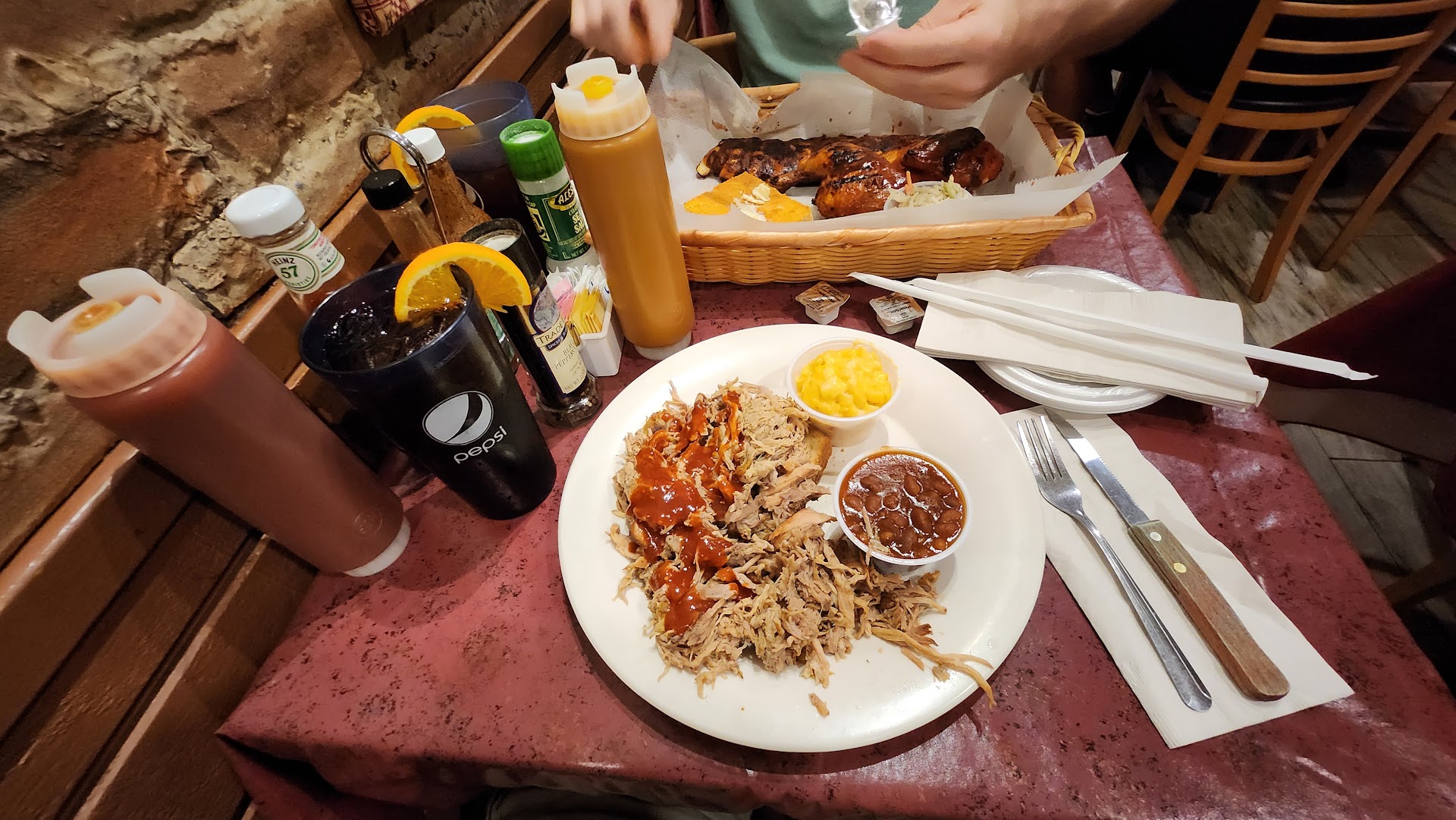 Read moreWe figured this restaurant couldn't be that bad because of the 150+ positive reviews. Boy were we wrong. I'm not sure where the other reviewers ate, but there's no way it was here. It should've been obvious the food wouldn't be good when we opened the door and couldn't smell any barbecue. We got the beef and pork platter as well as their ribs and wings. The beef was shredded, drenched in a sauce most reminiscent of Spaghettios, and tasted like week old microwaved leftovers. The pork was dry and flavorless. Each rib was smaller than the length of my index finger, and tasted about the same. The wings were decent, despite them putting the wrong sauce. The side of mac and cheese consisted of an ice cream scoops worth of noodles, and the cornbread obviously wasn't fresh. I'm not sure if it's because we came on a Sunday and they were strapped for time, or if it's because we've had good BBQ, but what we got today was absolutely vile. We barely touched anything on our plates, and didn't bother taking leftovers, as we wouldn't feed that to even a dog. We saw another group come in after us and I considered warning them to turn back before it was too late. Based on their reviews, either nobody in Boca has any idea what good BBQ is, or, more likely, the vast majority of these reviews are fake. Either way, absolutely disgusting food. I can't recommend that anybody wastes...