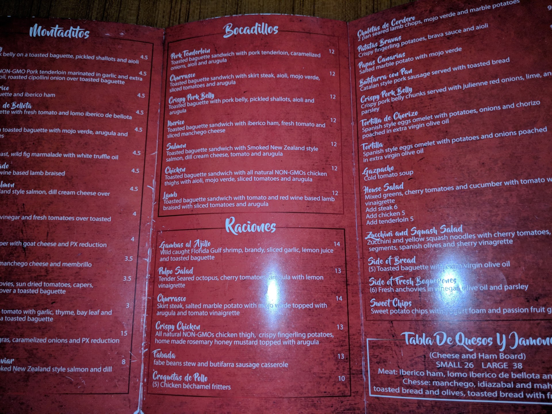 Read moreWhere have you seen "gambas al ajillo" without garlic, when garlic is the main ingredient along with the shrimp? When I asked about this essential ingredient, the waitress said that it was initially there, but because it was windy it flew away (REALLY????? flying garlic??? LOL). Additionally, the oil in the "gambas al ajillo" was not even olive oil and if it was, it was a really low quality oil. The wine was turned and when I brought it to the attention of the waitress, her immediate excuse was that it was a new bottle and she could only offer a different wine, refusing to open a new bottle of the wine I wanted (It's funny that she said that because when she was serving the wine at the bar I was in line to use the restroom and I could see how the waitress used two already open bottles to fill up our glasses). CONCLUSION: I am from Spain and can tell you that this is NOT Spanish...