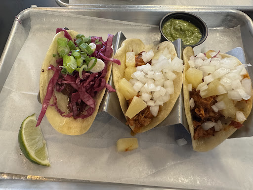 Yāall. Stop looking for tacos in Boca⦠Just come here. The entire experience was great. 2 employees greeting you with smiles right at the door. Fun loud-ish music setting the ambiance. Plenty of seats both inside and outside, and super cool art on the walls. Tableside ice water brought automatically, a blessing in this summer heat. An impressive cocktail / mocktail menu, thereās definitely something unique for people of all ages to drink. Oh and the food⦠This place has some sort of wizards working in the kitchen here. The flavors are ridiculous. The food arrived no less than 2-3 min later, impressively HOT (almost burnt my tongue) and so fresh! The chicken Al Pastor was sooo tender and juicy, plenty of meat to fill the taco, the pineapple was fresh and so sweet and acidic, perfectly balanced, and the Korean beef was crazyyy good too! My boyfriend got 2 mahi and 1 Tandoor taco and said the tandoor taco was the single best taco heās ever had in his life. No pork that I could see on the menu, but you do not find yourself missing it.. We 100% will be back! $43 for a cocktail, a Mexican coke, and 6 tacos and chips and salsa! Canāt beat the...