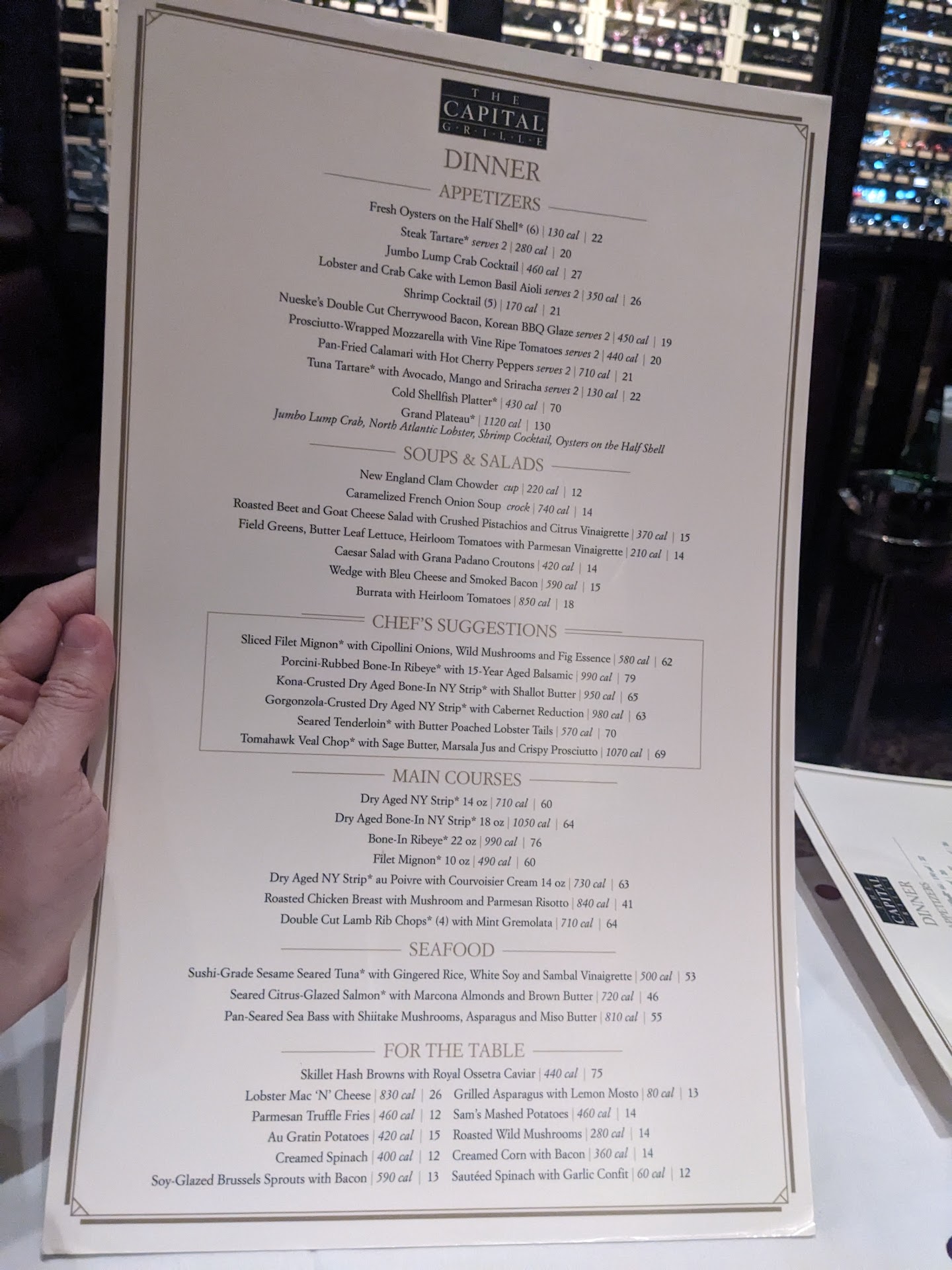 Read moreI was a regular at TCG until covid and had not been there for close to 3.5 years. When my husband and I were in mid October 2023, we were surprised that some things had not changed (which was good), and other things had changed (for the worse). Nothing has changed about the vibe, which is steakhouse, dark, same artwork, and the same well trained, seasoned servers -many of the servers we knew from years ago were no longer there. To our amazement, a server approached our table and said "gentlemen, it's been a long time, how have you been?" And it was Elizabeth, LIZ, who was one of the most seasoned professional servers. She had been our server over the years, and she then said "you like vodka martinis shaken very cold with olives on the side, right?" And we nodded our heads yes. "And you don't eat meat, right? And we again said yes, in amazement, that Liz remembered our drink and entree preferences after such a long time. But in many ways, this is what makes TCG iconic and special: the service is outstanding, anticipatory in nature, professional in execution. You truly feel that your server cares about your enjoyment of the meal, and cares that you are there. We had two dirty gooses, and when Liz brought the first round, she advised that these were the last we could have because they had run out of Grey Goose Vodka. Hmm, I expressed out loud, someone clearly fell down in their game and did not order sufficient quantity of this vodka. Our first example of a problem with management. We enjoyed our Grey Gooses, at $18 each, exceedingly well shaken, a full to the brim martini glass, with 3 stuffed olives on the side. We then shared their jumbo shrimp cocktail, 5 truly jumbo shrimp, served with their sauce. As we continued to eat the delicious cooked on site bread, using the sweet butter provided and dipping some of the bread in the jumbo shrimp cocktail sauce. Liz then presented the specials, announcing the scallops special. It was described as 5 jumbo scallops served over a bed of polenta, with mushrooms. She also remarked that they had not had scallops for years, apparently some problem with the distributor. We eagerly said "yes, we will share the scallops, can they be plated for two in the kitchen?" And Liz replied yes. The scallops came out and we were ama.zed We each had 2.5 scallops served over a minuscule amount of polenta. We each looked at each other, and were speechless. We then committed our first mistake. We ate the scallops. We ate it slowly. We cut the scallop into tiny tiny pieces. But you know what, the quantity of the scallops did not increase, nor did the amount of polenta. We then committed our first mistake. We ate the scallops. We ate it slowly. We cut the scallop into tiny tiny pieces Oh, we ordered a side of asparagus which was as we recalled - a large serving, prepared well, and well worth $13 We shared The Capitol Grille Cheesecake. It was divine. $13. And then the check. We were flabbergasted when we saw that the scallops were $65! What? Did someone go crazy? Didn't anyone from management look at what was being served? Wow, this was incredible. We closed out the check, tipped Liz well for her professional and warm service. We then approached the hostess podium and I asked to see the managing partner, whose first name is BOBBY. I was told he was not on site. what, the quantity of the scallops did not increase, nor did the amount of polenta. Oh, we ordered a side of asparagus which was as we recalled - a large serving, prepared well, and well worth $13. We could have eaten two portions. We shared The Capitol Grille Cheesecake. It was divine. $13. Incredible. A second round of martinis made with Tito's Vodka. And then the check. We were flabbergasted when we saw that the scallops were $65 Didn't anyone from management look at what was being served? Wow, this was incredible We approached the hostess podium and I asked to see the managing partner, whose first name is BOBBY. I was told he was not on property, and I asked to see the MOD...