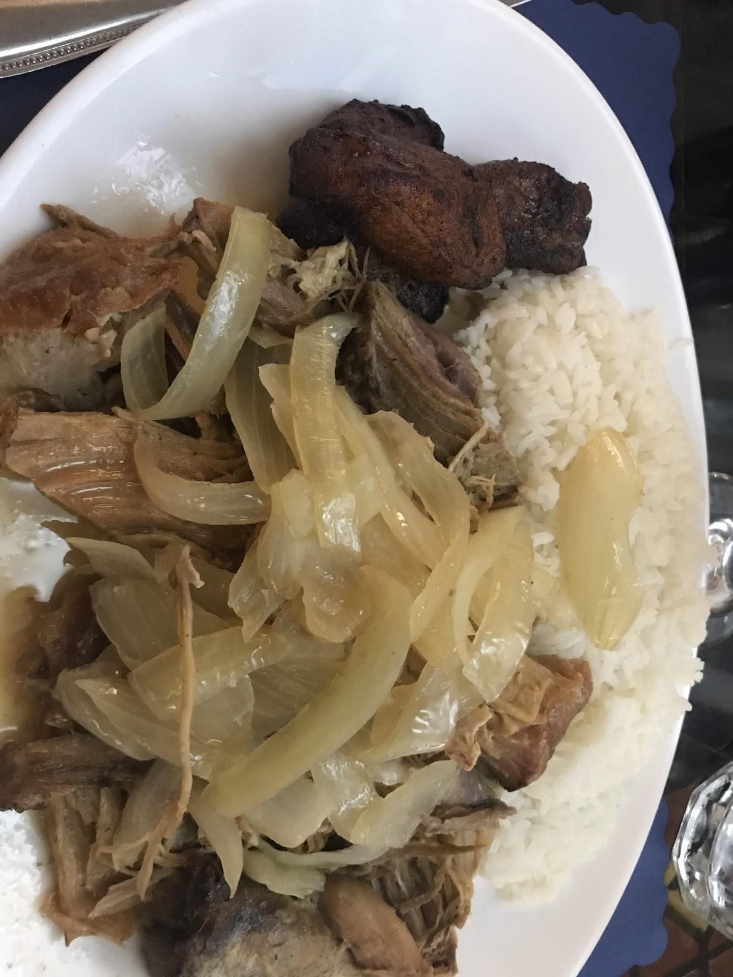 The three garlic sauce dishes (camarones, mixed seafood, and fish fillet) had very little garlic flavor and no salt at all. We could detect no flavor of the citrus marinade that should have been evident in the bistec. It was just a properly-cooked but flavorless piece of top round. The Zarzuela de Mariscos, which in their version, as stated, should have had a Creole sauce, was just a bunch of various seafood (all quite perfectly cooked, as mentioned above) on a bed of rice which had been mixed with some tomato sauce but otherwise, like all the other dishes, had no spice or flavor or seasonings, and certainly no Creole flavor to it.